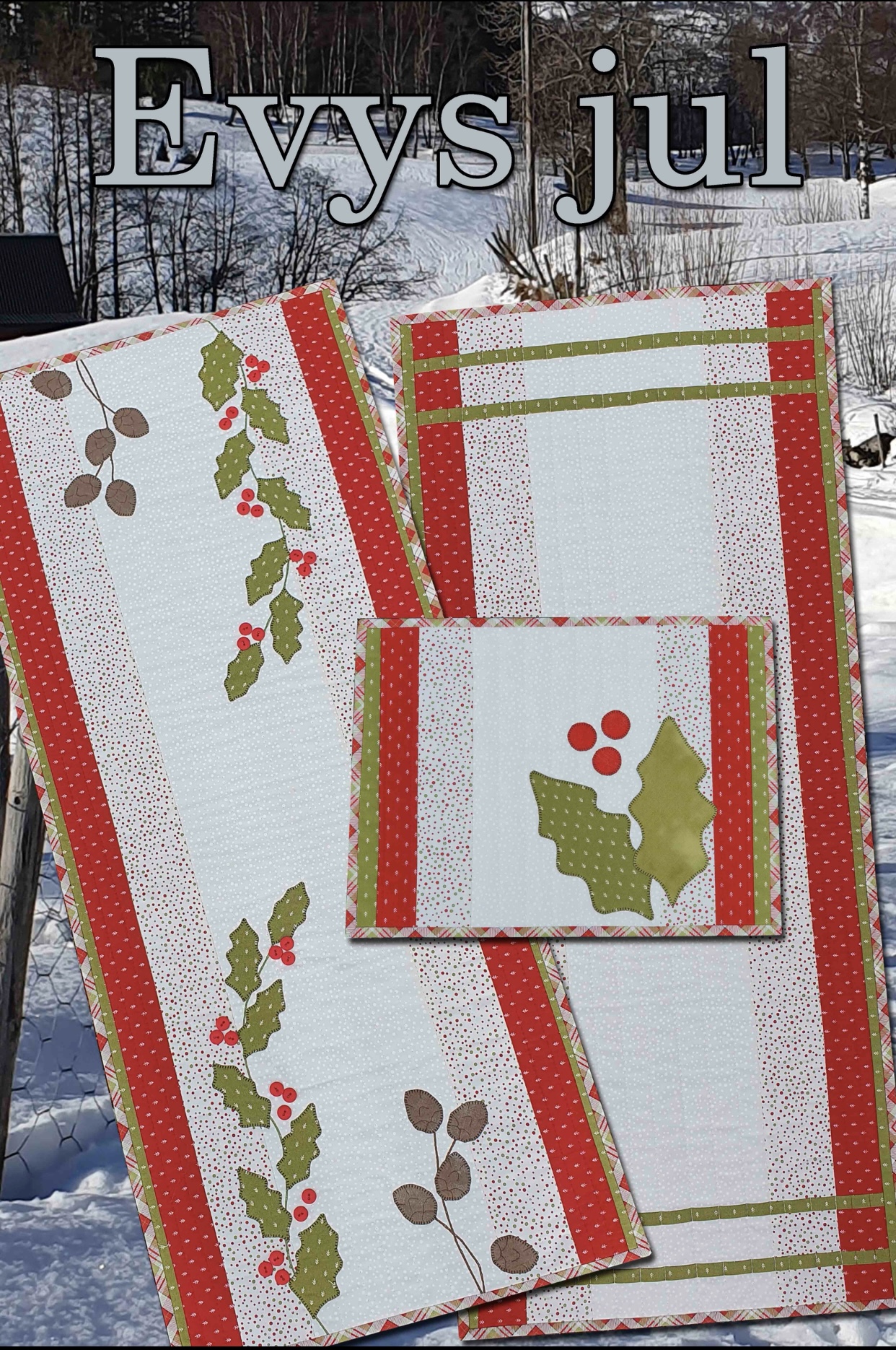 Beskrivelse Spisebrikker, og 2 forskjellige varianter av løper. Str, Løpere: 16 1/2” x 38 1/2” (42 x 98 cm) Str, spisebrikker: 16” x 12” (41 x 30 cm) Teknikker: Tradisjonell lappeteknikk, Quilting med rettsømsfot / overtransportør, applikasjoner med knapphullsting (maskinsøm). Gren til kongler og blader: 3-stings rettsøm på maskin. Materialliste: Mengde menes hel stoffbredd, der ikke annet er nevnt. Løper 1: Med applikasjoner. Løper 2: uten applikasjoner. Applikasjoner Løper 1: Blader: her er brukt samme som stoff D (men er oppgitt hver for seg i materiallisten). *Bær: Velg mellom å sy på små, røde knapper, eller å applikere. Spisebrikke: Applikerte blader: Bruk 2 forskjellige grønne. |