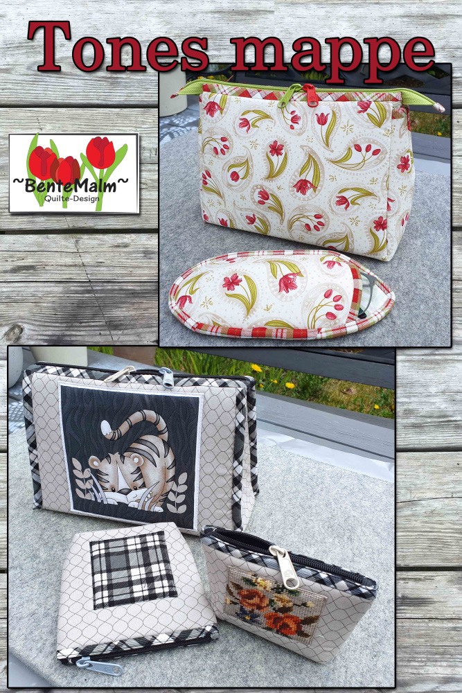 Beskrivelse Mønster på mappe sydd av et helt, stort stykke, og som får forskjellig utrykk om man velger å sy sidesømmene på yttersiden eller innsiden. Str: 9” x 7” x 3 1/2” (28 x 18 x 9 cm) b x h x d (b og d målt langs nedre kant). Glidelåsen syes best på for hånd (maskinsøm er også mulig). Motiv er applikert på (rettsøm på maskin). Tips til bruke av stoff/vatt-restene: Det blir litt store rester i de fire hjørnene. Mønsteret har enkel forklaring til brillehus og 2 stk små punger (det er nok rester til å lage 2 stk av disse tingene). Brillehus: Str 9’’ x 4’’ (23 x 10 cm) Små punger: Str 5 1?2’’x 3 1?2’’ (14 x 9 cm) og 5 1?2’’ x 5’’ (14 x 12 cm) |