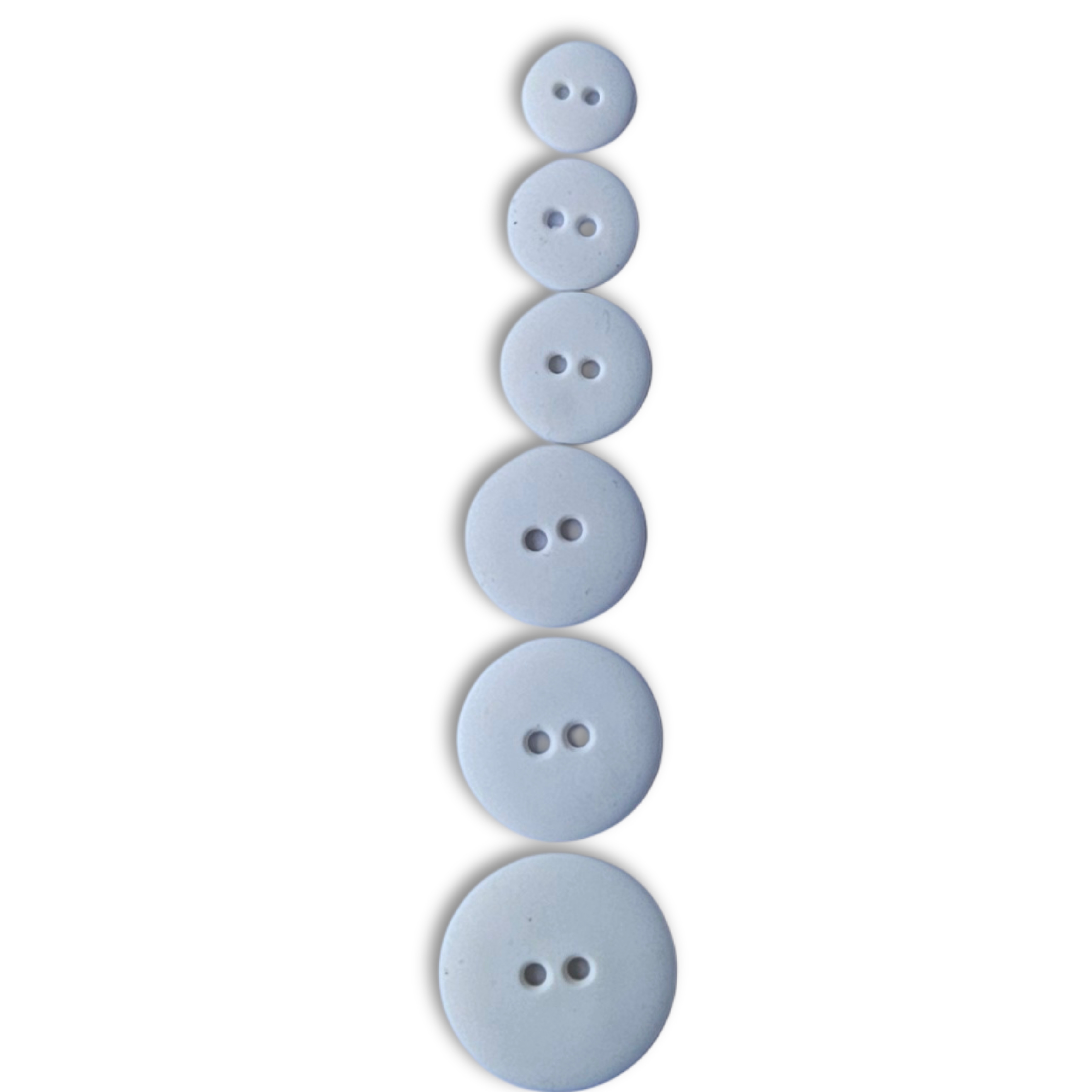Knapper med to hull. Hvit farge og matt overflate. Velg I sidemenyen hvilken str. Du ønsker.