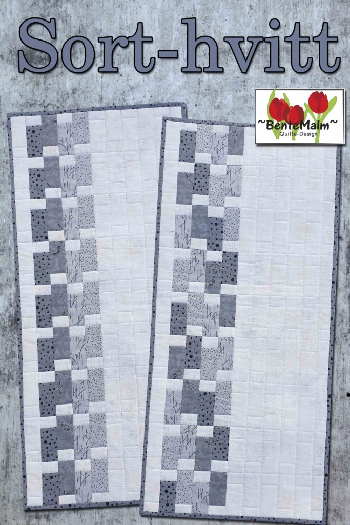 Beskrivelse Løper i 2 variasjoner. Str. 16 1/2" x 36" (42x92cm) Modellene er laget i stoff i hvit/gråfarger, men de kan like gjerne lages mer fargerik. Tradisjonell lappeteknikk, quilting med rettsømsfot/overtransportør. |