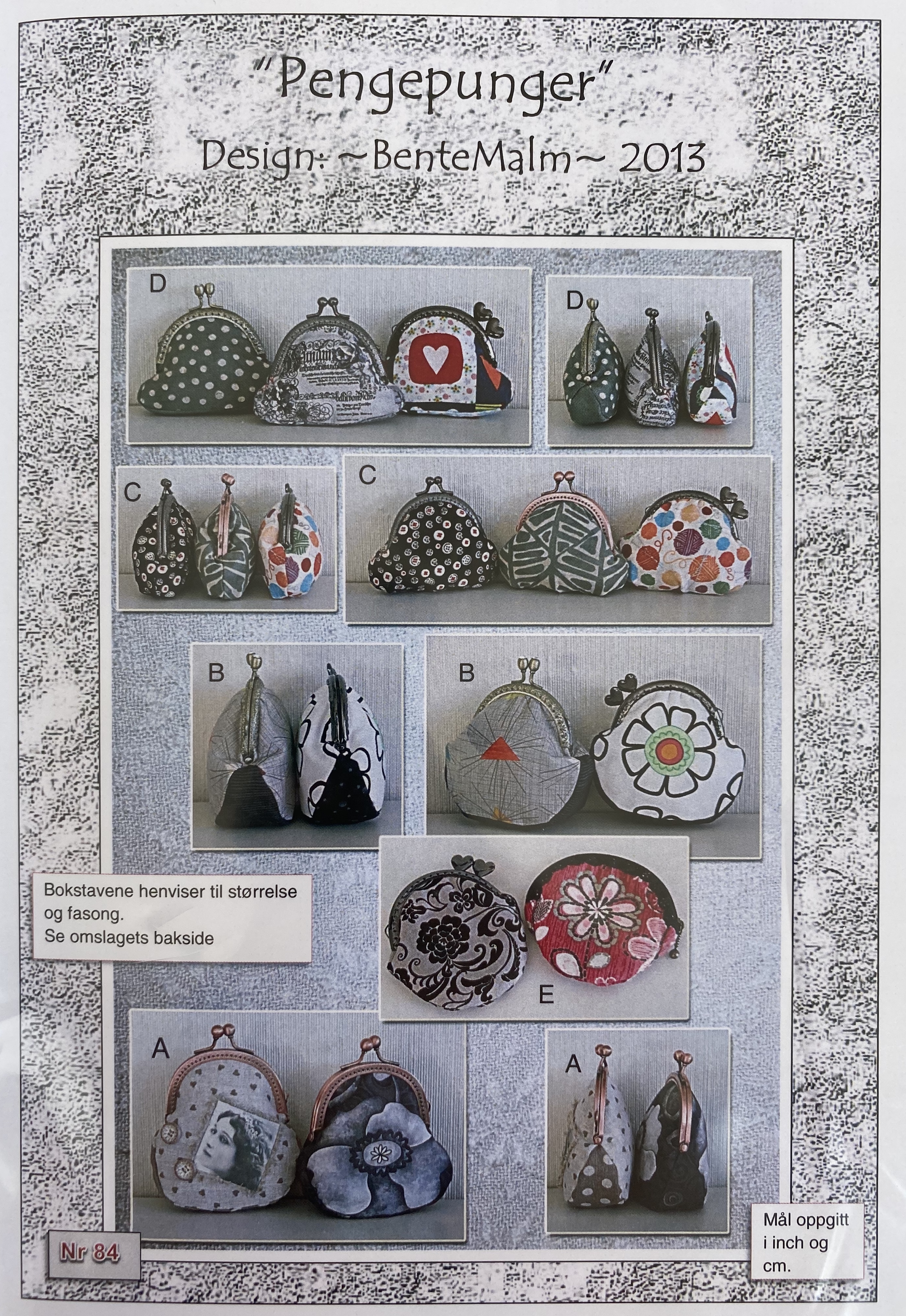 Forskjellige mønster på flere små punger. Mønster byttes ikke når de er tatt ut av butikken