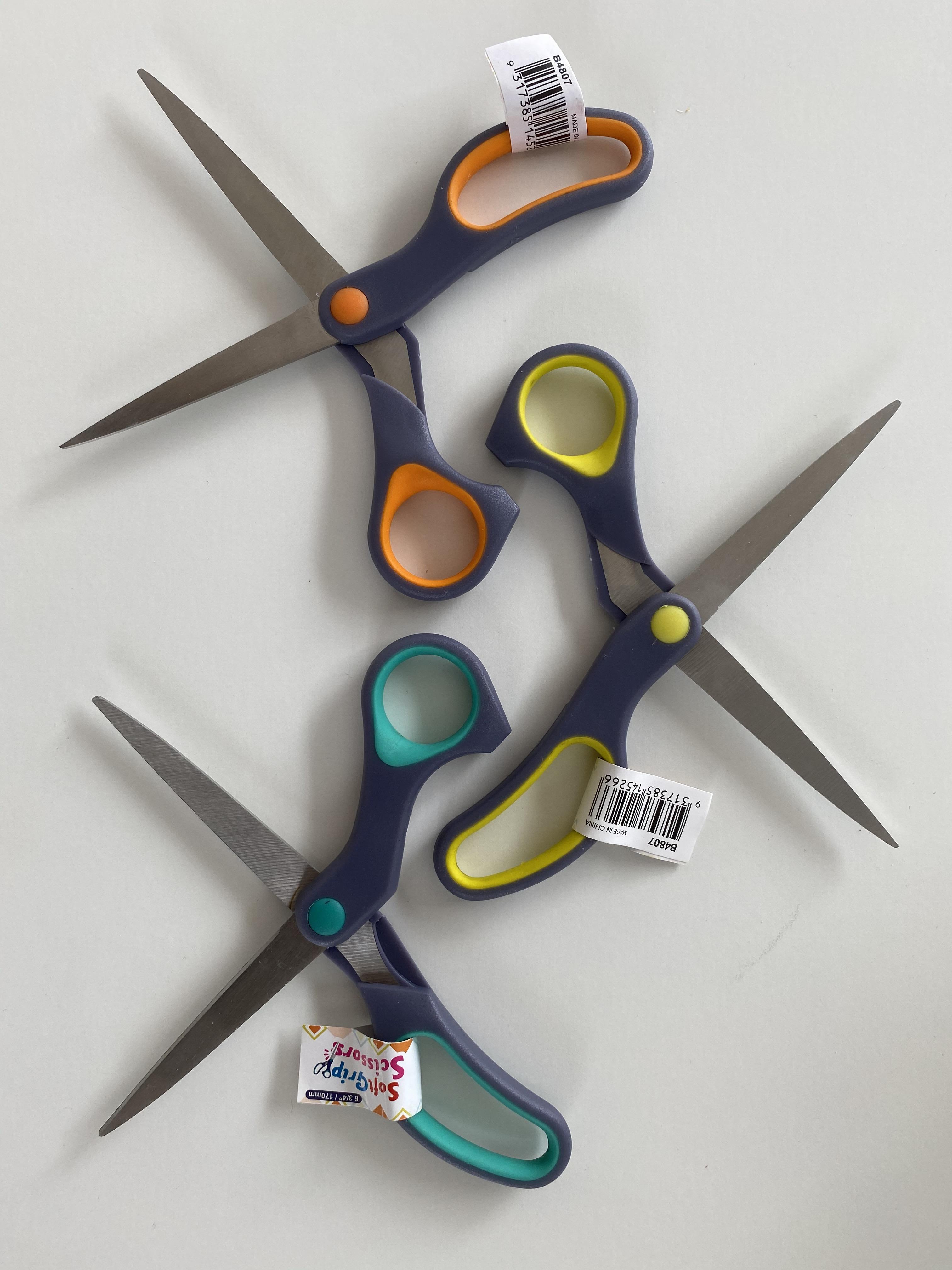 Liten saks med godt håndtak for små prosjekter. Her kan du markere saksene slik at du har forskjellig farge til papir, stoff og vatt fex. Enkle og billige sakser av helt grei kvalitet.