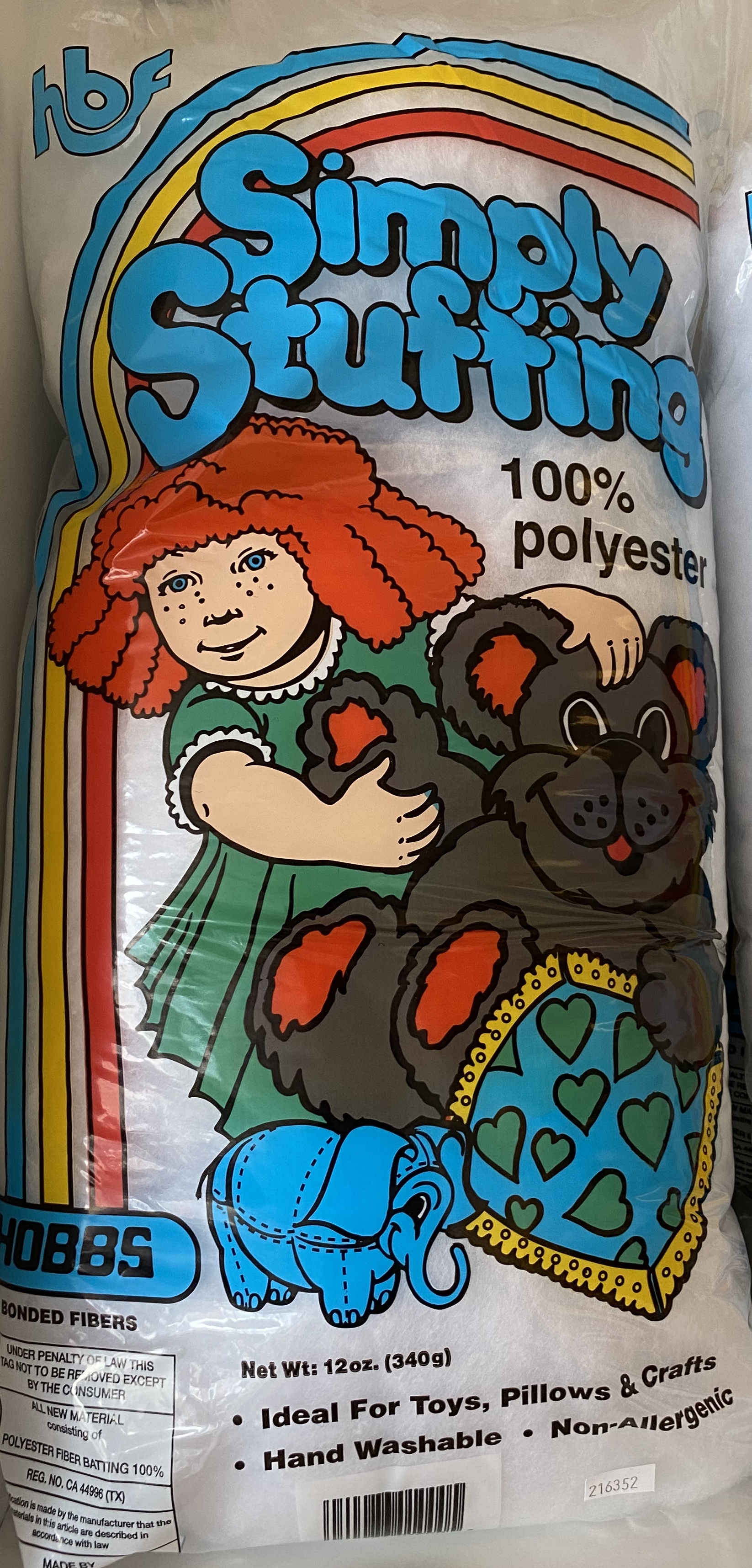 100 % polyester. Fyllvatt til små og store prosjekter. ( stappevatt ) Fin til bamser, nåleputer etc.