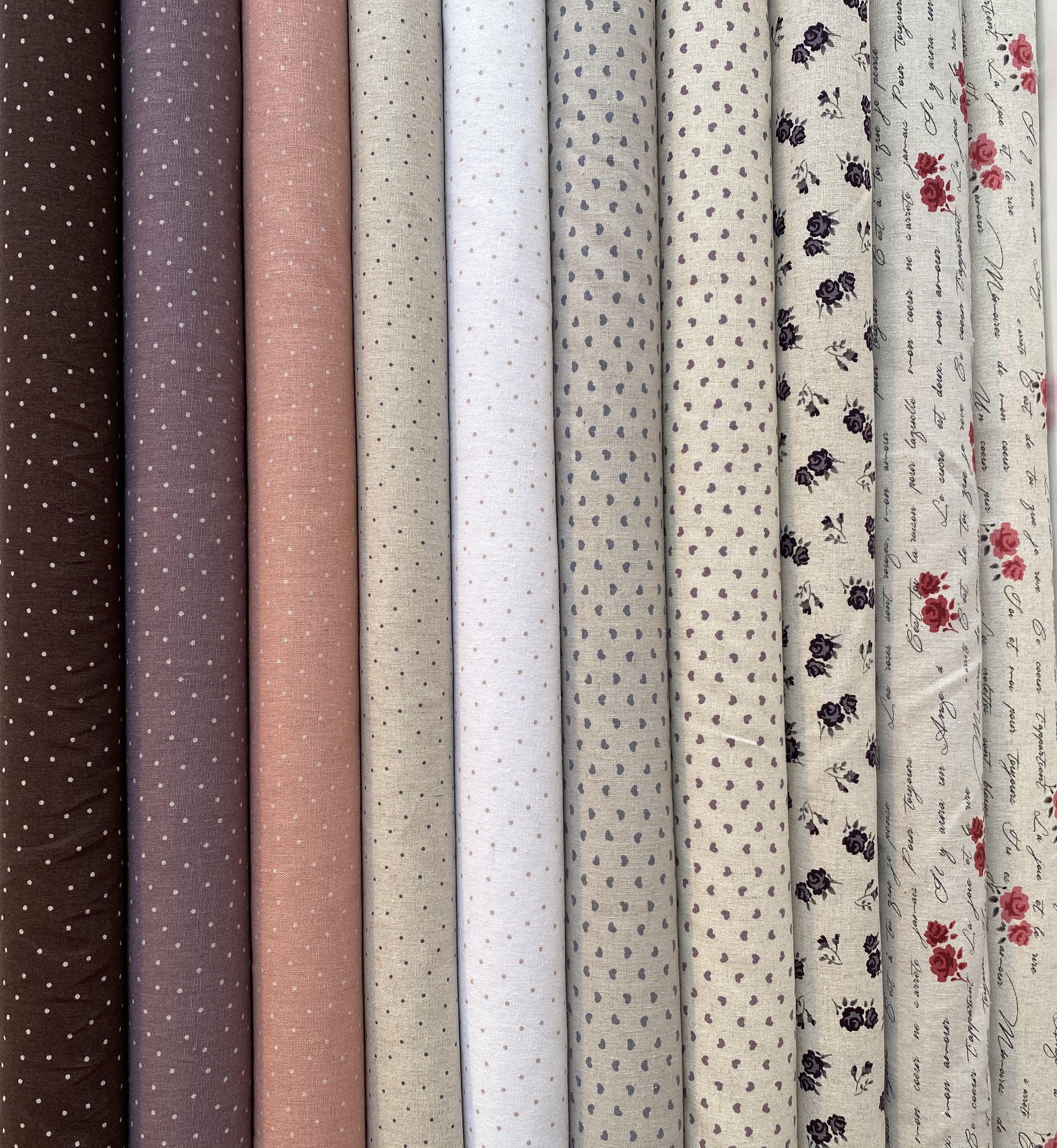 Beskrivelse 55 % Lin og 45 % bommull. Flotte stoffer man kan bruke til mangt og meget:) -Passer veldig fint til duker , toalettmapper små duppeditter etc. Ser for meg at De tre søstre i My Quilt nr.2. 2020 ville blitt fint med disse stoffene |