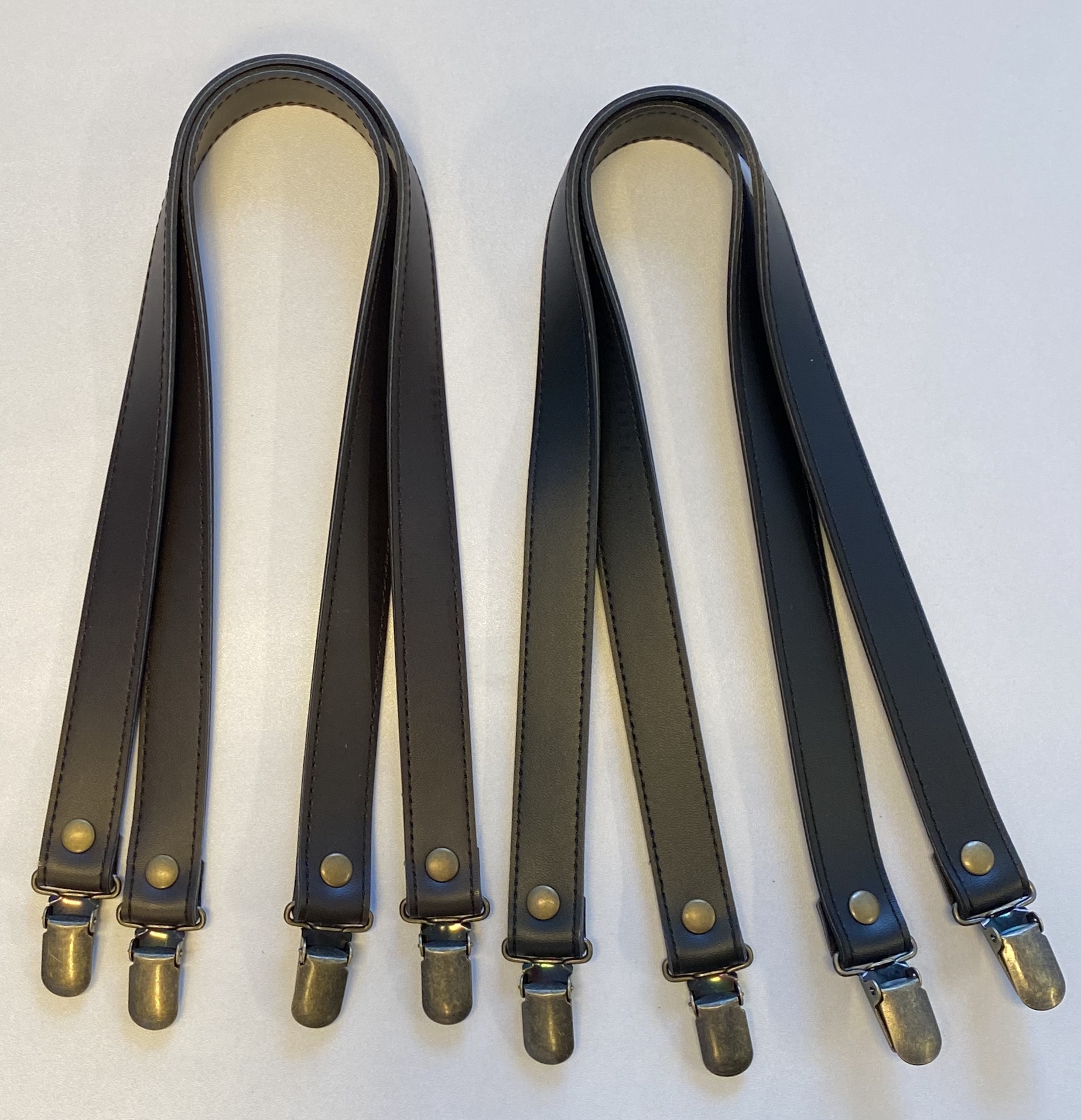 lærhanker i imitert skinn med klips feste. Feste er kraftig og sitter godt på.
