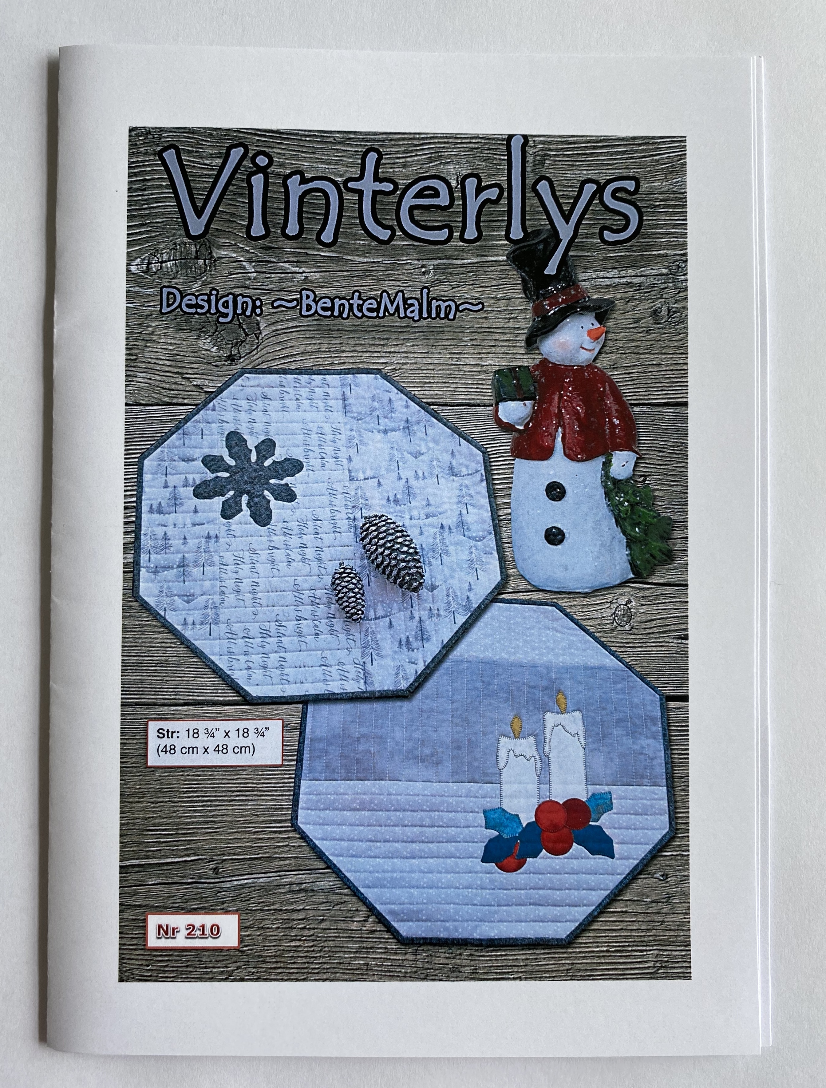 Beskrivelse Enkel 8 kantet brikke med applikasjoner som passer både på runde og firkantete bord. Str: 48 cm x 48 cm. Teknikker: Tradisjonell lappeteknikk og applikasjon med maskin. Quiltes med rettsømsfot og kan med fordel bruke overtransportør. Ønsker du forslag til materialpakke så spør om vi kan være behjelpelig med å sette sammen stoffer :) Bortsett fra stoffene og mønstret trenger du til prosjektet: Thermofix / vlisofix Syntetisk bordvatt |