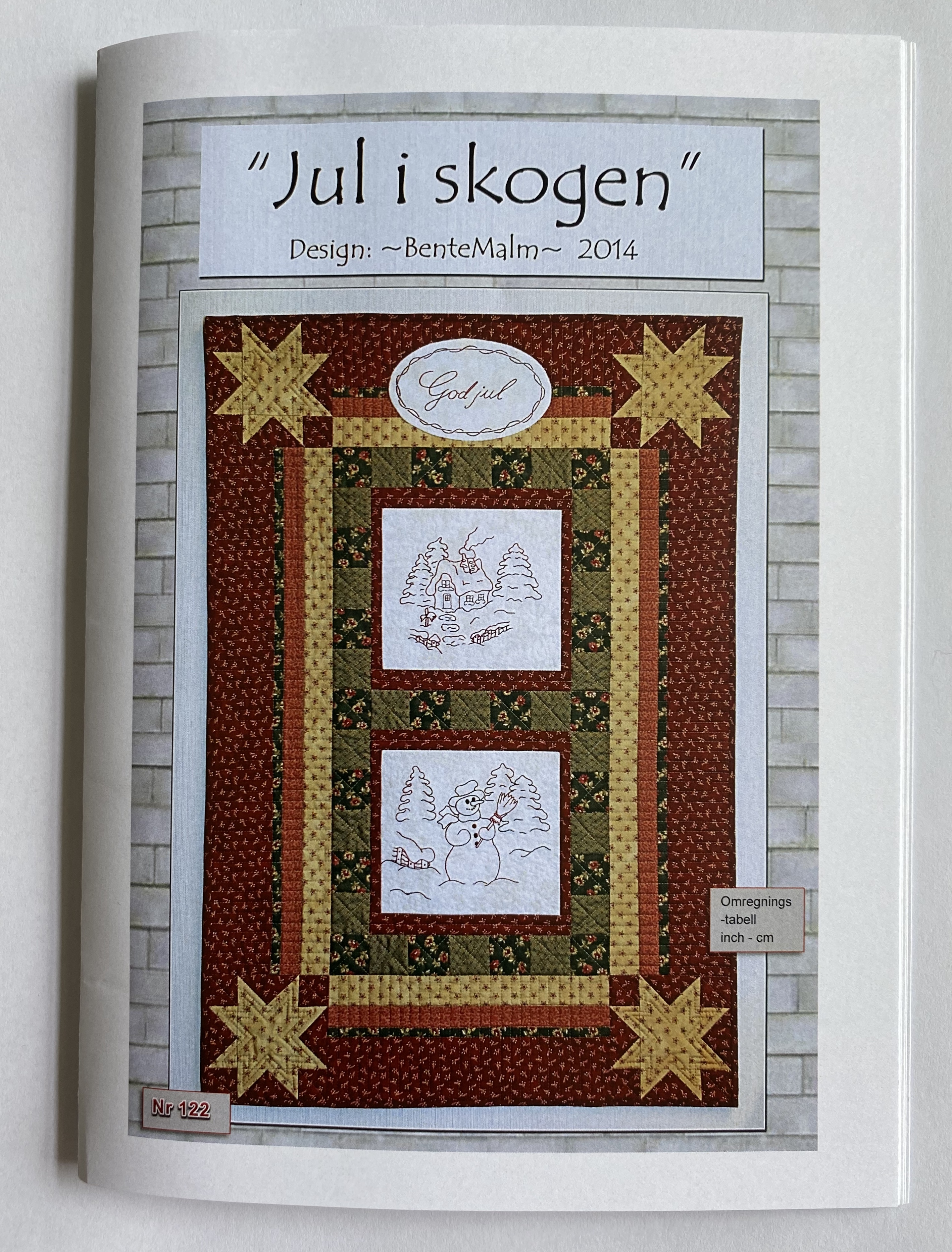 Beskrivelse Veggteppe med brodert motiv. Ser også for meg at dette kan brukes som adventsduk? Str: 66 cm x 98 cm. Teknikker: Tradisjonell lappeteknikk og broderi for hånd. ( stichery) Det er brodert med attersting og plattsøm. Quilting med rettsømsfot på selve teppet. Frihåndsquilting med stoppefot på broderte blokker. Broderiet " God Jul" er applikert på til slutt. ( enten for hånd eller maskin) Stjerneblokkene kan syes enten med Flying geese linjal, eller som hurtigtrekanter. Begge deler forklart i mønsteret. Ønsker du forslag til materialpakke så spør om vi kan være behjelpelig med å sette sammen stoffer :) Bortsett fra stoffene og mønstret trenger du til prosjektet: Stichery fusible eller annen tynn stabilisator Syntetisk bordvatt Frysepapir eller vlisofix DMC moulinègarn 3 stk rød 115 |