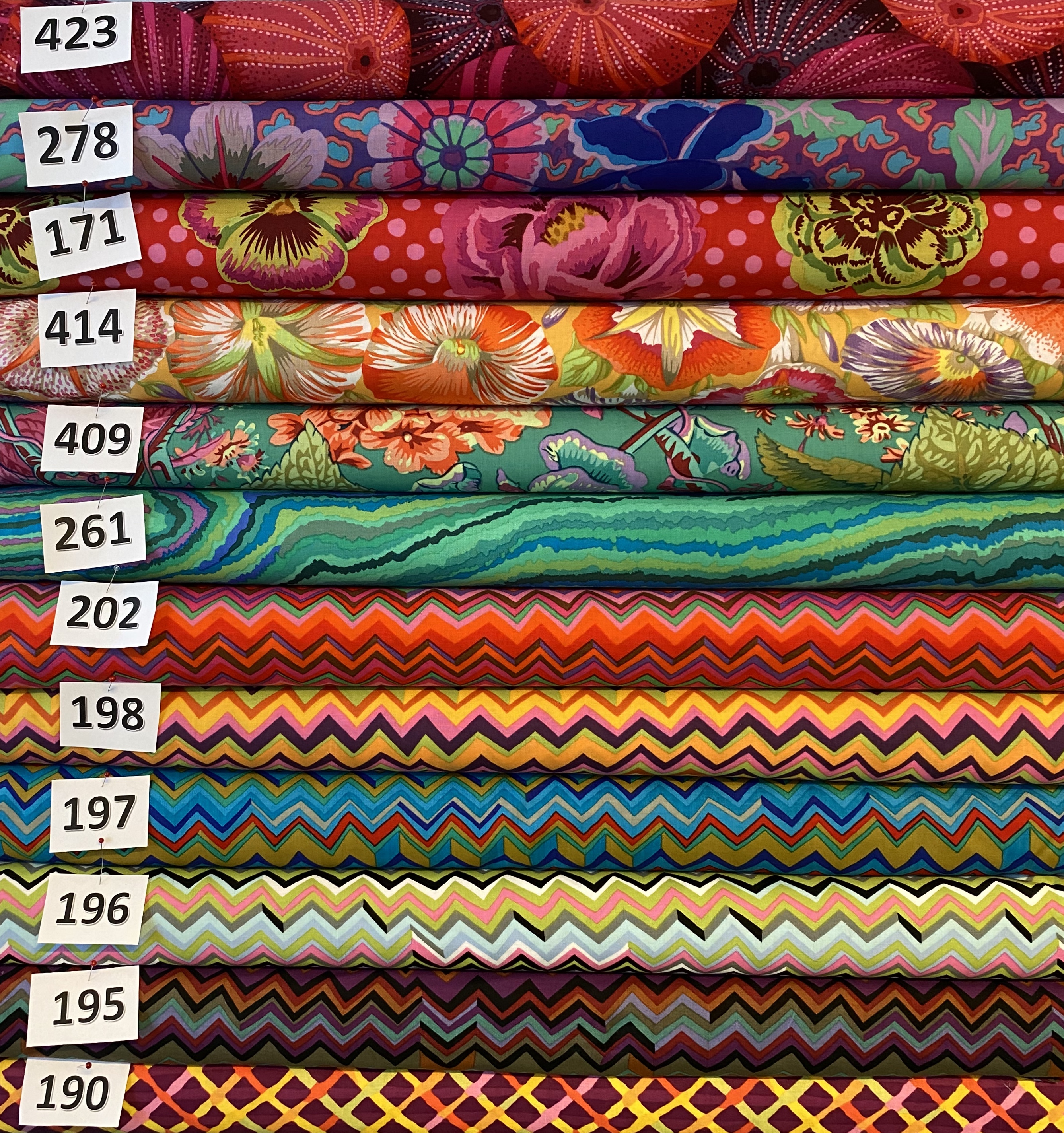 Beskrivelse Stoffer fra Kaffe Fassett i 100 % fast bomull og med bredde på ca.110 cm. Disse stoffene har fått navnet Garden. Navnet er bare for å sette bildene i forskjellige kategorier. Det eneste som er riktig i navnet er fargenummer. Flotte stoffer i flotte motiver og farger. |