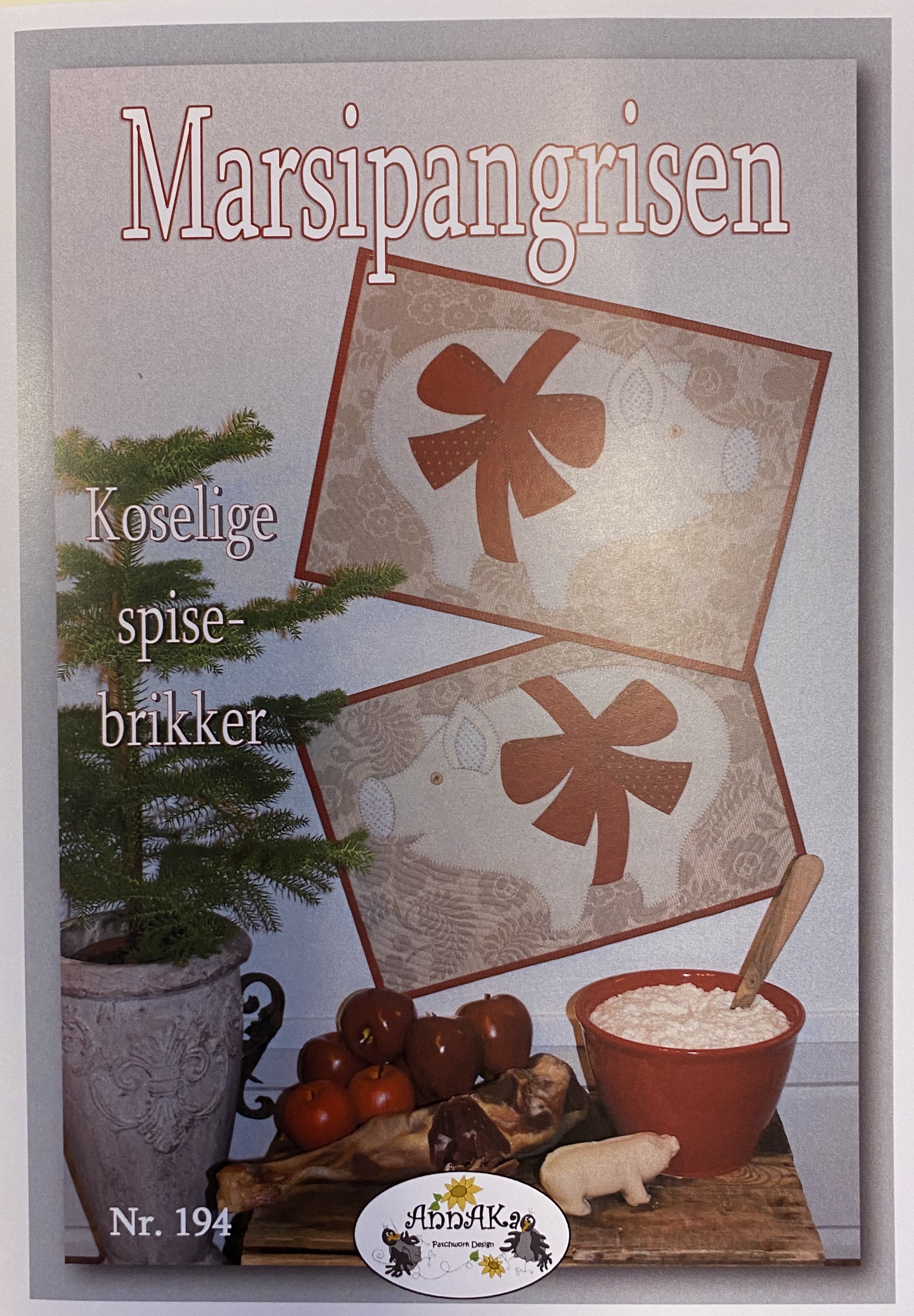 Spisebrikker med mål på 32 cm x 45,5 cm. Brikkene er applikert med en julegris