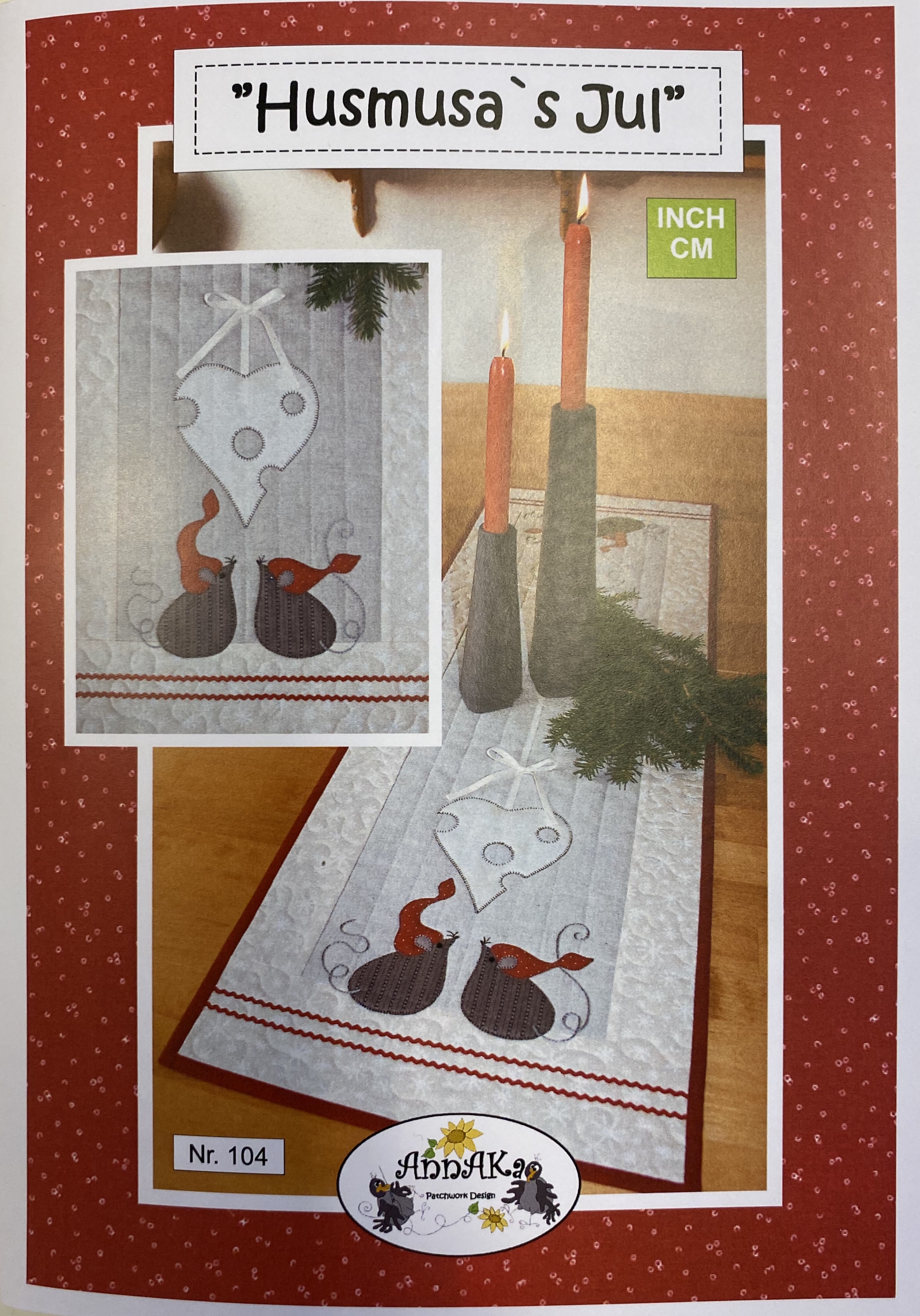 Løperens mål er 34 cm x 103 cm. Søt applikasjon med muser og ost. Dekorert med bommullsbånd, kroklisser og noe håndbroderi. ( hale , nese og værhår)
