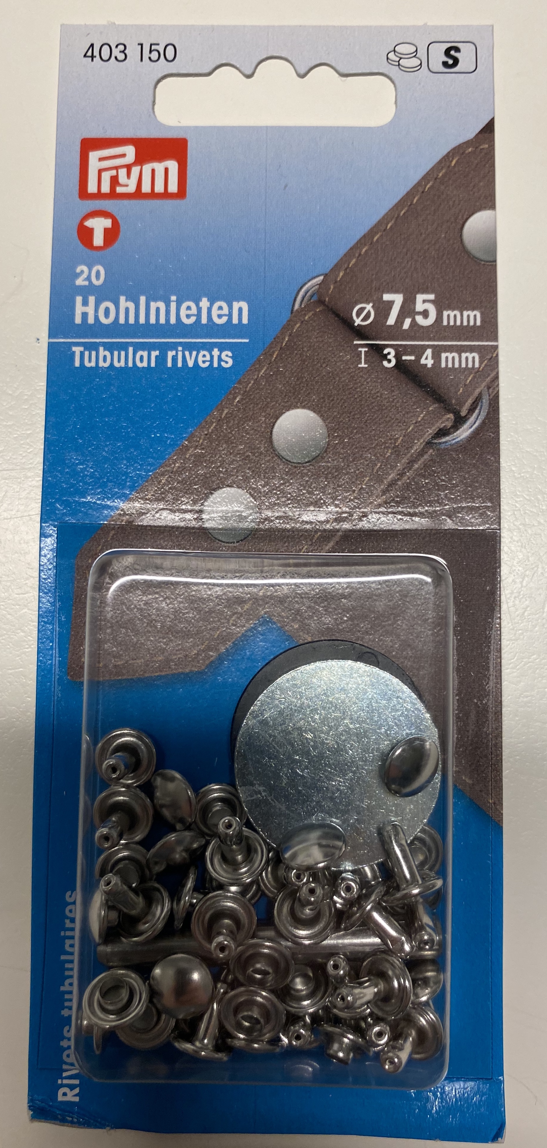 Niter eller nagler som vi ofte kaller disse. Disse slås inn med hammer og medfølgende verktøy. Brukes mye til å slå fast diverse lær reimer. Sølvfarget