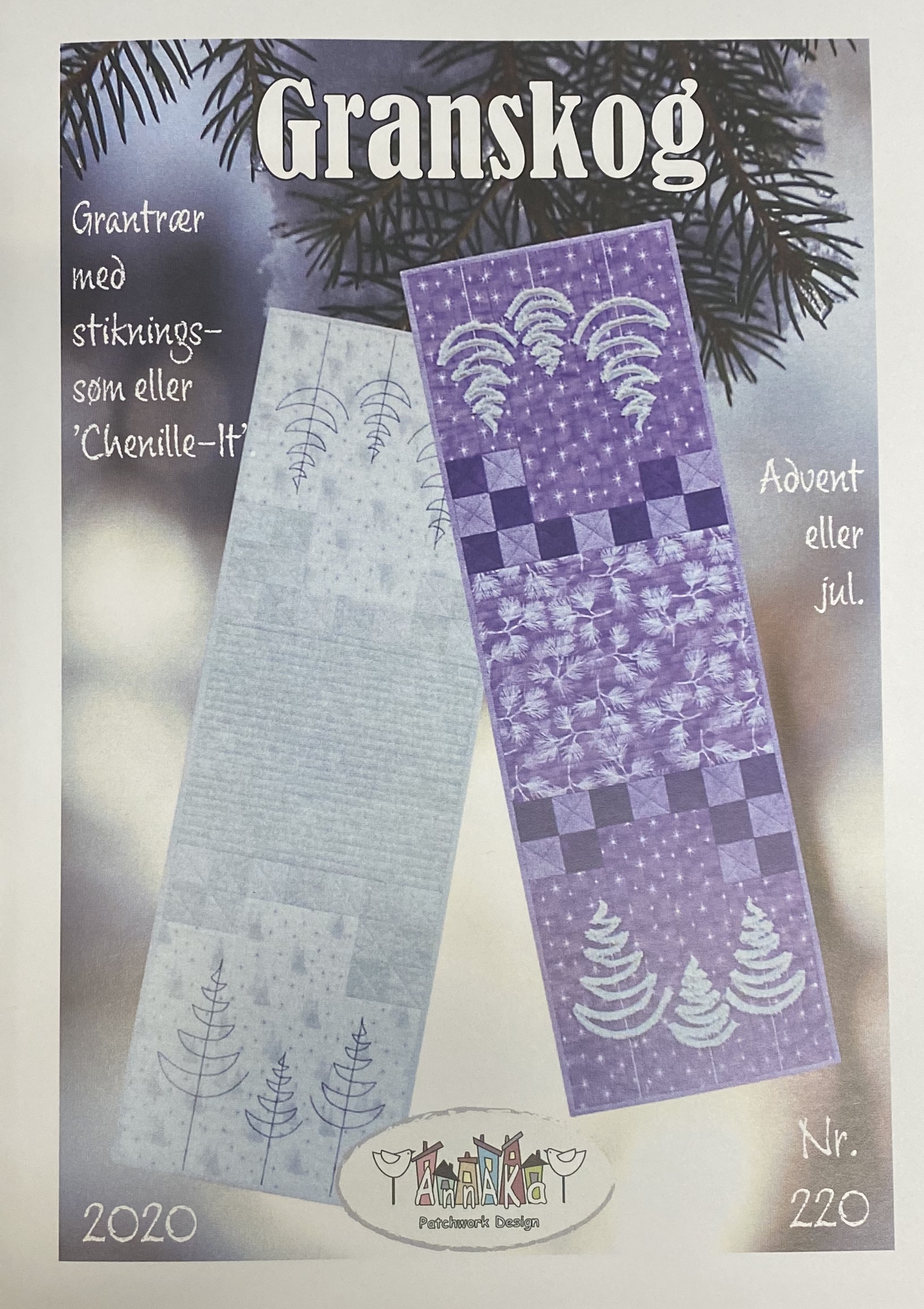 Beskrivelse Flott Adventsduk som også kan lages i forskjellige farger i fht at duken kan vare hele julen. Grantrær kan lages med maskinsydd stikningssøm eller med 'Chenille-It'. Løperne måler 14 3/8" x 43 1/2" (36,5 x 110,5 cm). Du finner materialpakke i nettbutikken med orginalstoffene. I pakken er det alle stoffene til toppen, og bakstykke. |