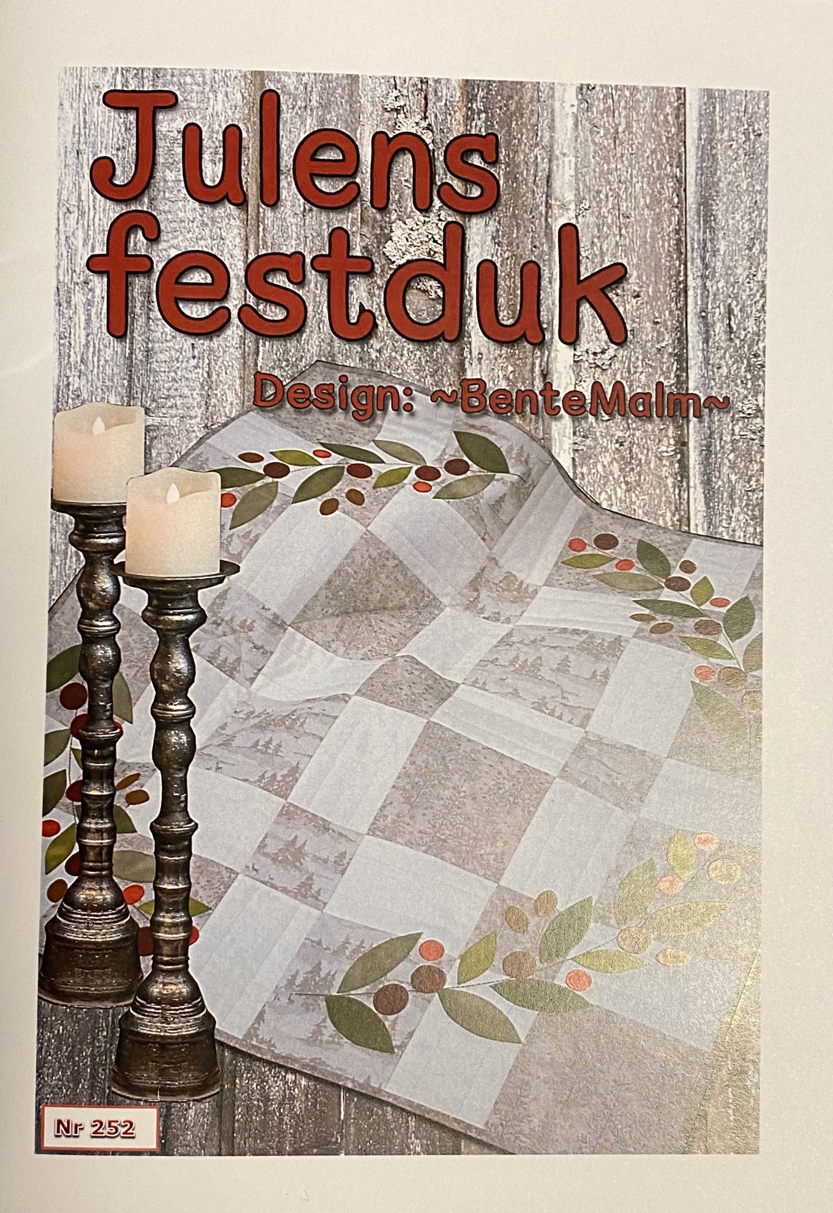 Fin duk med applikasjoner på. Duken måler 96,5 cm x 96,5 cm. Vi har materialpakke på denne duken så lenge lagret rekker