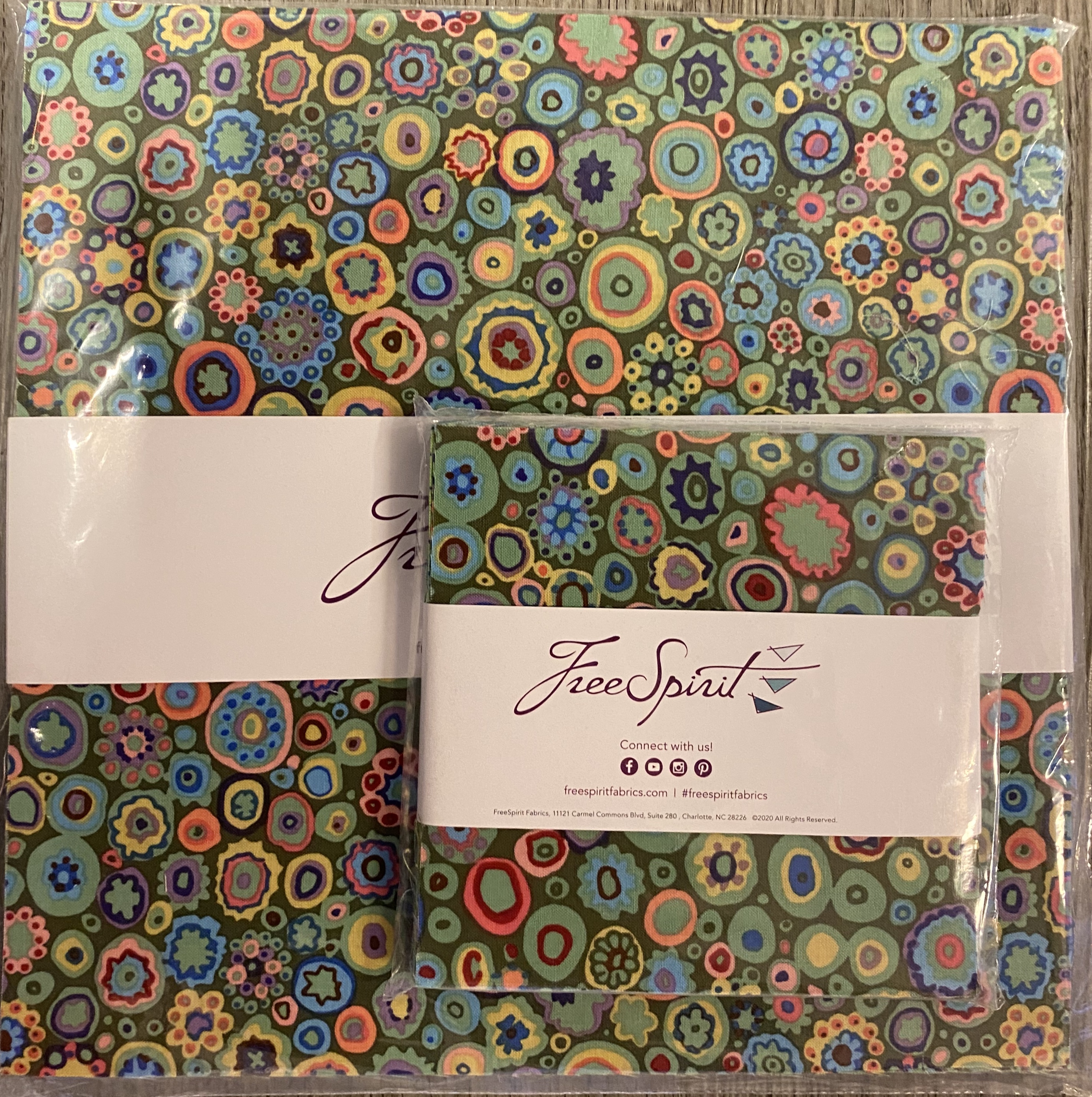 Charm pack og Layer Cake fra Kaffe Fassett i grønne toner. Velg i nedtrekksmenyen ønsket variant.
