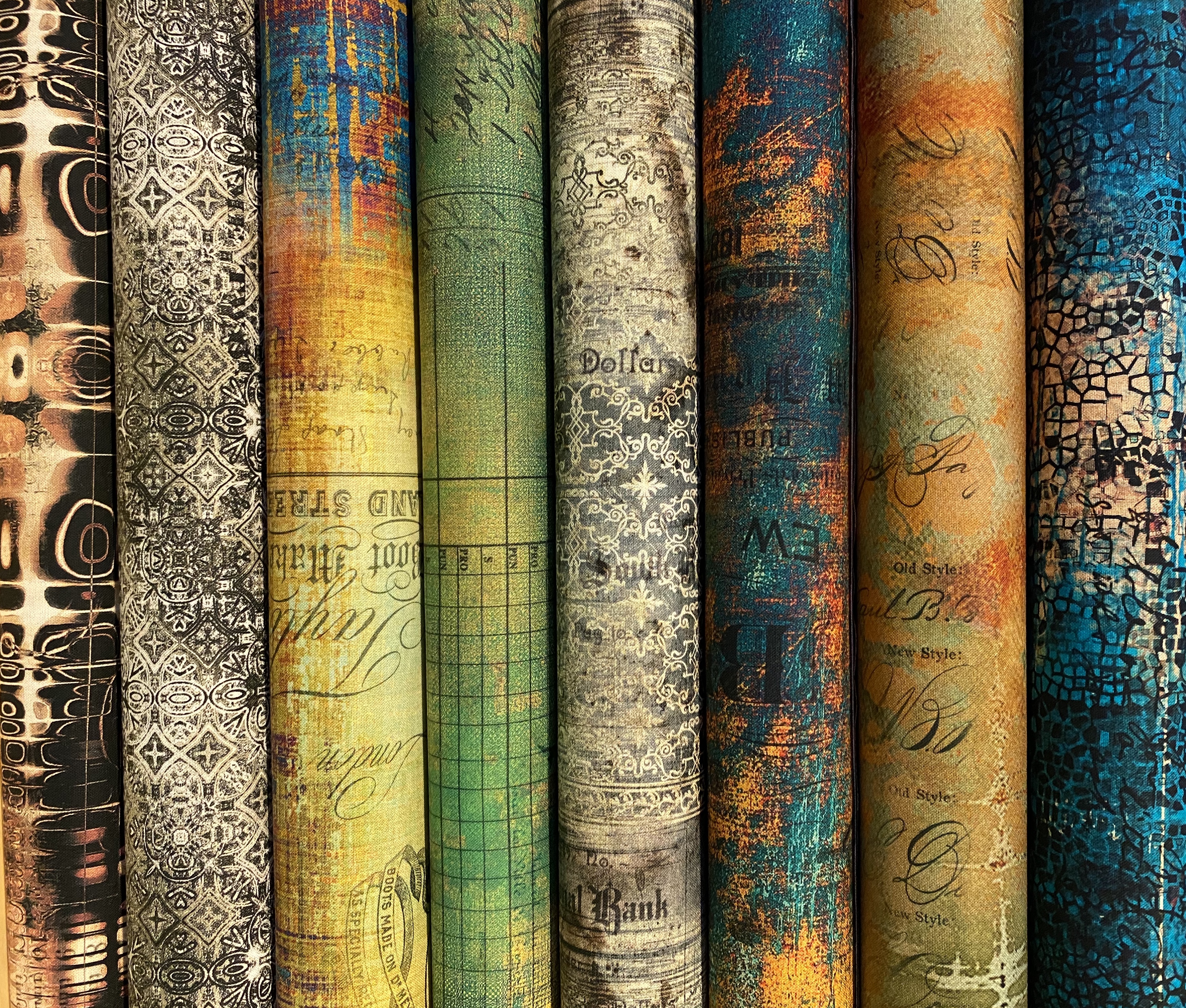 Beskrivelse En hel serie fra Tim Holtz i 100 % fast bommull og bredde på 110 cm. En flott serie i friske farger som har god kontrast til sitt navn. Bildet med stoffene samlet er det bildet som viser best fargegjengivelse. Stoffene er fantastisk til vesker så vel som løpere eller kjoler |