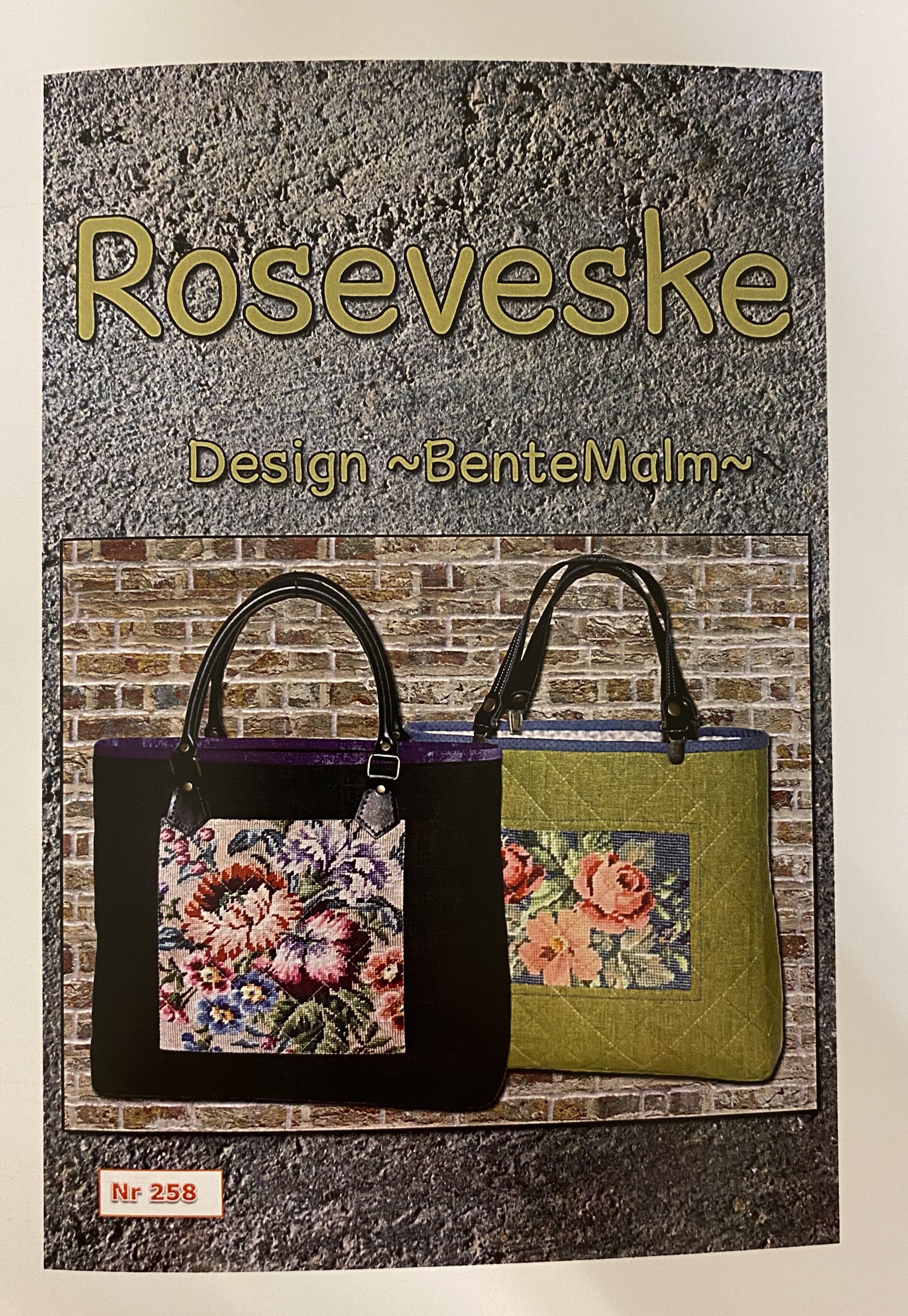 Beskrivelse Linveske med broderipynt. Stoffet med korsstingbroderi er ferdig trykket motiv. Andre motivstoff kan også brukes. Størrelse på vesken er 34 cm x 28 cm x 9 cm. I mønstret er det oppgitt med 4 forskjellige stoffer. I tillegg til stoffene trenger du: 50 cm Støttestoff ( Et hvilket som helst gammelt stoff) 55 cm Syntetisk bordvatt 55 cm Decor bond 40 cm Mesh 75 cm Fold - over elastikk 100 cmVlieseline H 180 50 cm Glidelås 1 stk Magnetknapp Skinnhanker 22 cm Vlisofix |