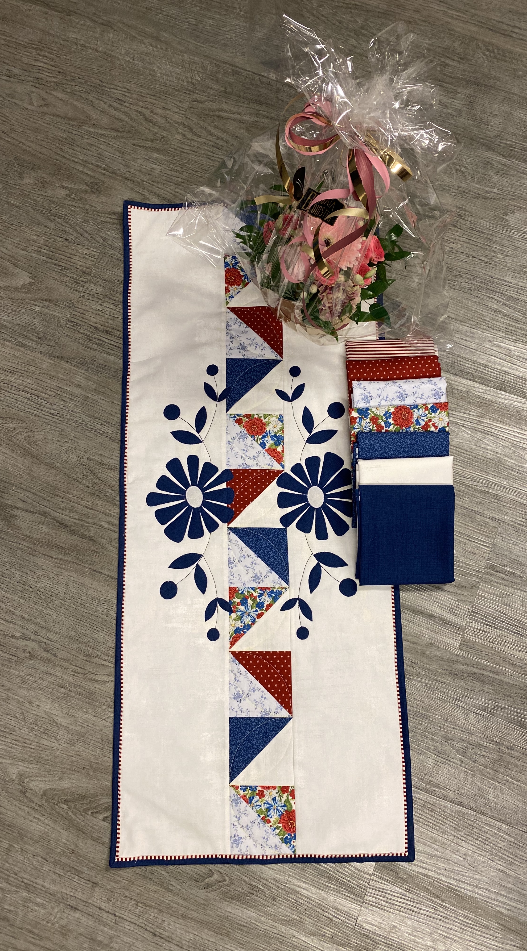 Beskrivelse Stoffpakke med Ca 6 ‘’ full bredde av alle stoffene til midtstykke + 50 cm grunge og 40 cm til applikasjon, og lukkekant. Ønsker du også å lage spisebrikker kan du bestille grunge nr 101 i tillegg. Det vil ellers være nok av de andre stoffene i midt stykke stoffene. ( må nok ha litt mer rød til lukkekant Du må i tillegg ha ; Mønster på broken dishes Vatt Gutermanntråd blå nr 13 og hvit Bakstykkestoff |
