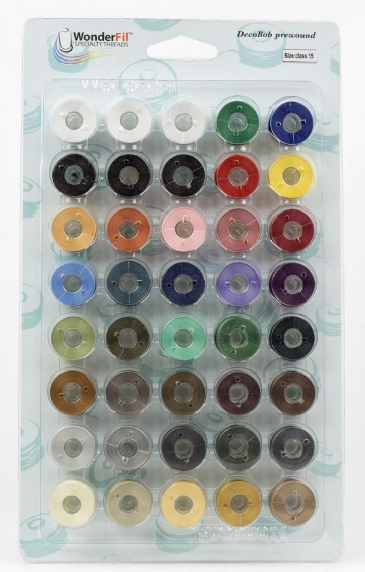 Beskrivelse Undertrådspoler fra wonderfil i flere forskjellige farger. Disse er fine og passer Janome sine modeller. Samt noen singer og Pfaff modeller. Inneholder 12 spoler i de som er ensfarget. Og fmulifarger med 40 spoler hvorav det er 3 hvite og 3 sorte. Anvendelse: Undertråd til brodering og til bruk når man syr . Meter/rulle: 125m/spole og 5000 m/pakke |