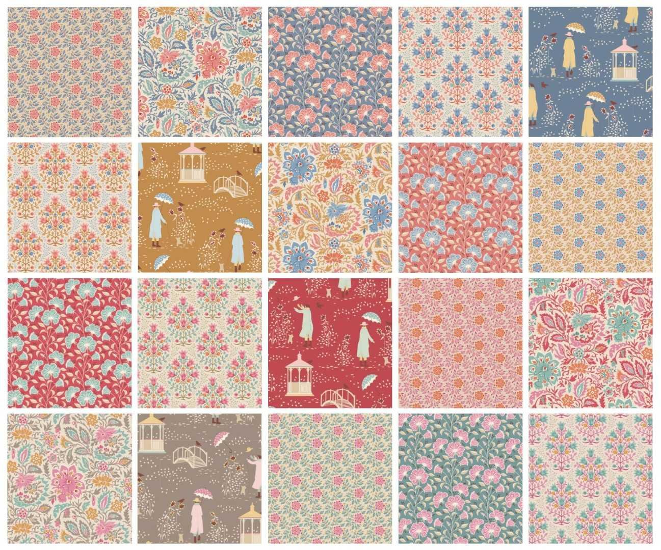 Stoffer fra Tilda fra høst kolleksjonen i 2021. Flotte og duse toner. Fast bomull med bredde på 110 cm. Se også Tildas Chambrey