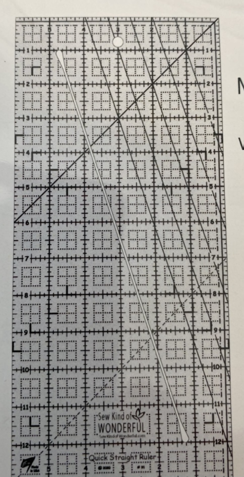 Denne linjalen er brukt i Sew kind of wondrful sitt mønster Diamond Daze. Et teppe mønster som også er veldig fint å bruke i duker, puter og spisebrikker