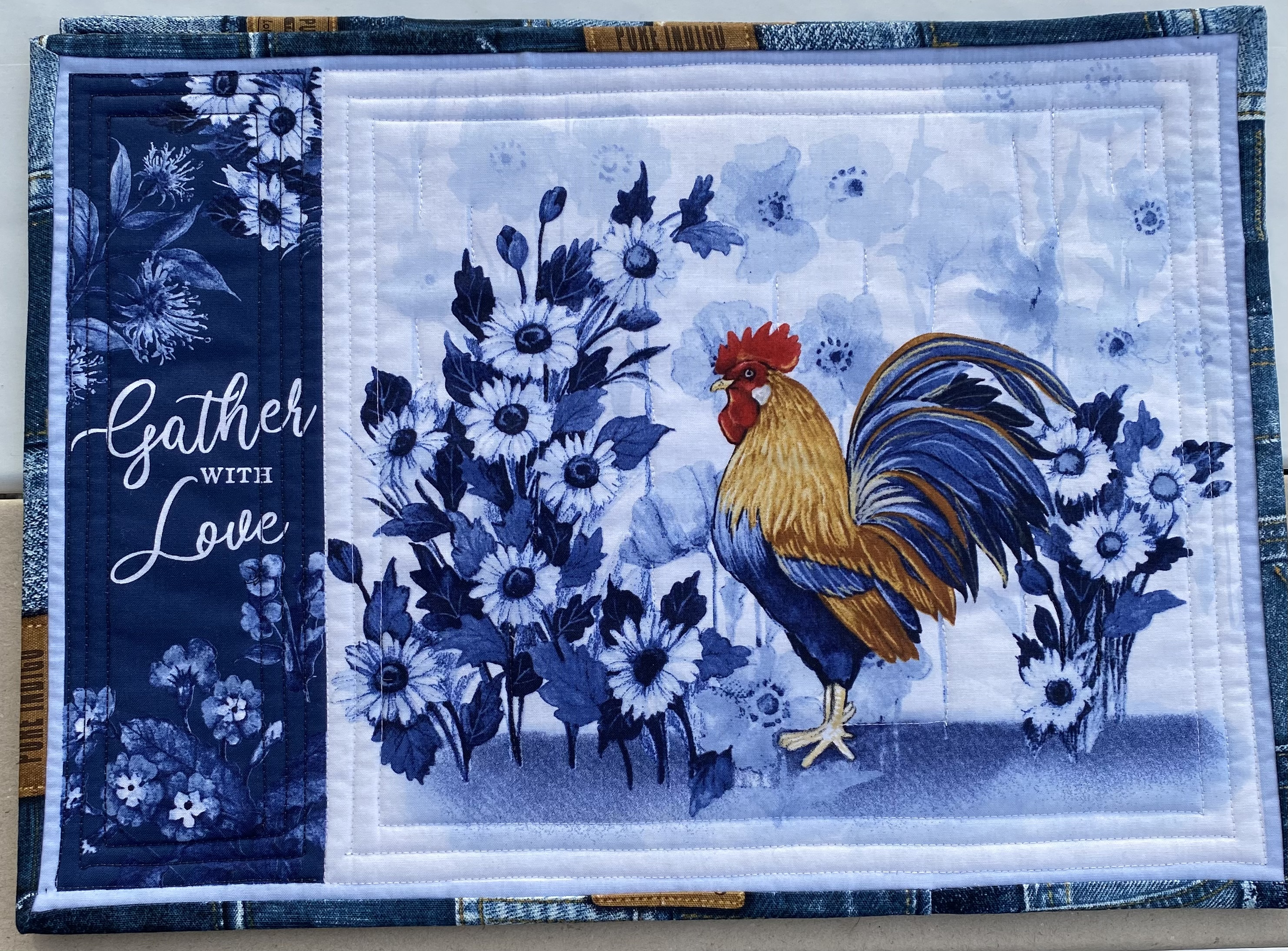 Beskrivelse Påskestoffer i 100 % fast bomull i en bredde på 110 cm. Denne serien har tre stoffer. Et panel, et hanestoff og et basic stoff med hønsenetting på. En kjapp måte å lage spisebrikker på. Se bilde på spisebrikkene for å få inspirasjon. Til bakstykke på disse har vi valgt et dongeri stoff. Hønsenettingen passer også fint. Ønsker du fex 80 cm velger du antall 2 og skriver i kommentarfeltet ønsket lengde på hvilket stoff. Ellers er antall 1 - 0,50 cm. Hanefar og hønsenetting kan fint brukes til bakstykke. Lyset gjorde den blå fargen litt lysere og hanefar litt blå skjær i. Med hanefar er hvit |