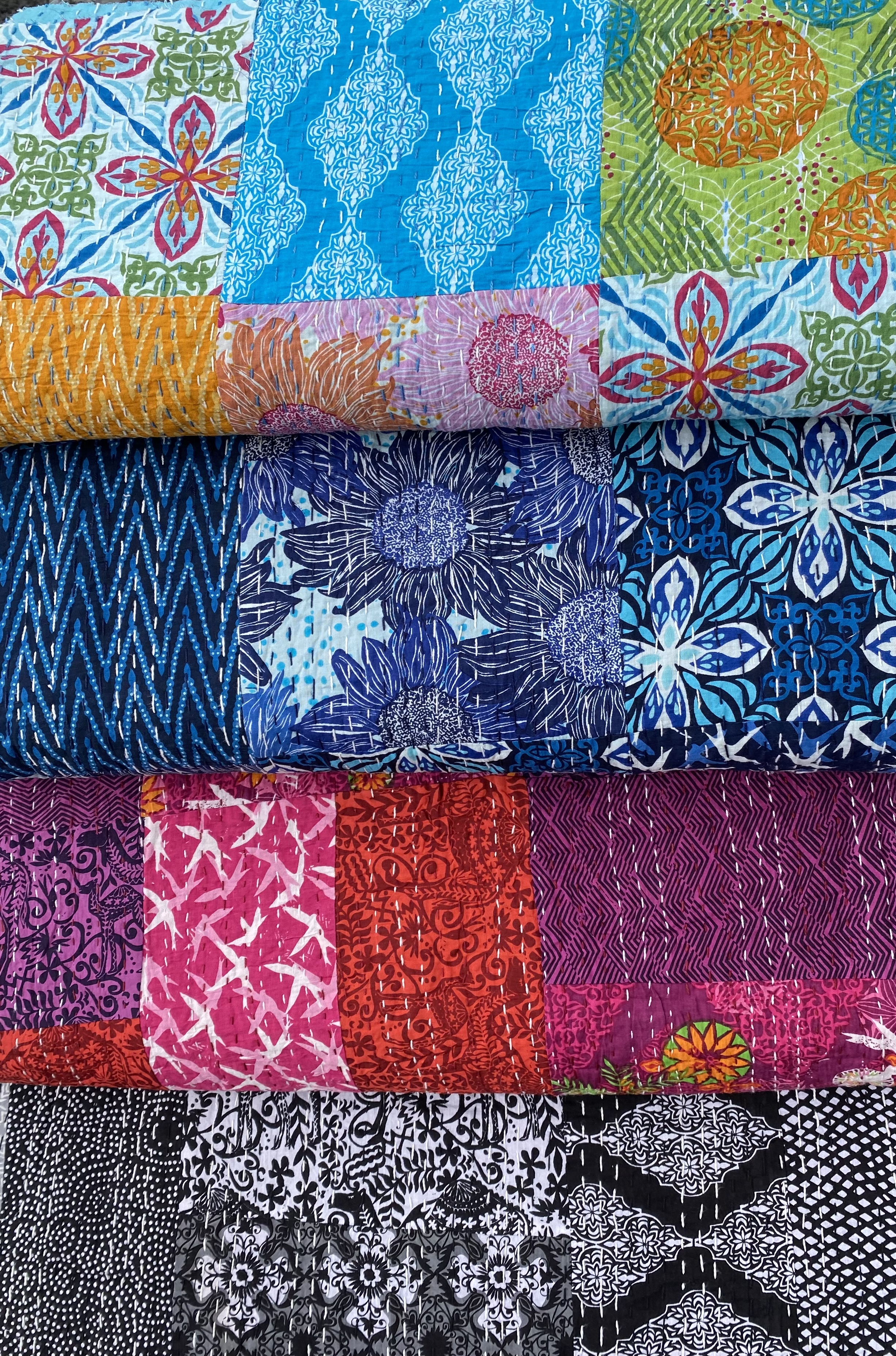 Beskrivelse Nydelig til handle veske. Og her trenger du ikke fore den da den er dobbel. Flotte vevde stoffer som er ferdig med både forstykke og bakstykke. De er tråklet i sashiko stil. Se inspirasjonsbilde for hva du kan bruke stoffene til. Ønsker du mønster på denne vesken gratis så skriv ønsket i kommentarfeltet. Disse stoffene kan du bruke både til tepper, vesker, klær og ellers hva fantasien setter i gang. Stoffene er i 100 % fast bomull og med bredde på ca.110 cm. Rapportene er på ca. hver 35 cm - 37 . Slik at her får du 35 cm = antall 1. ca. 60 cm vil da være antall 2 Stoffene er i 100 % fast bomull og med bredde på 110 cm. |