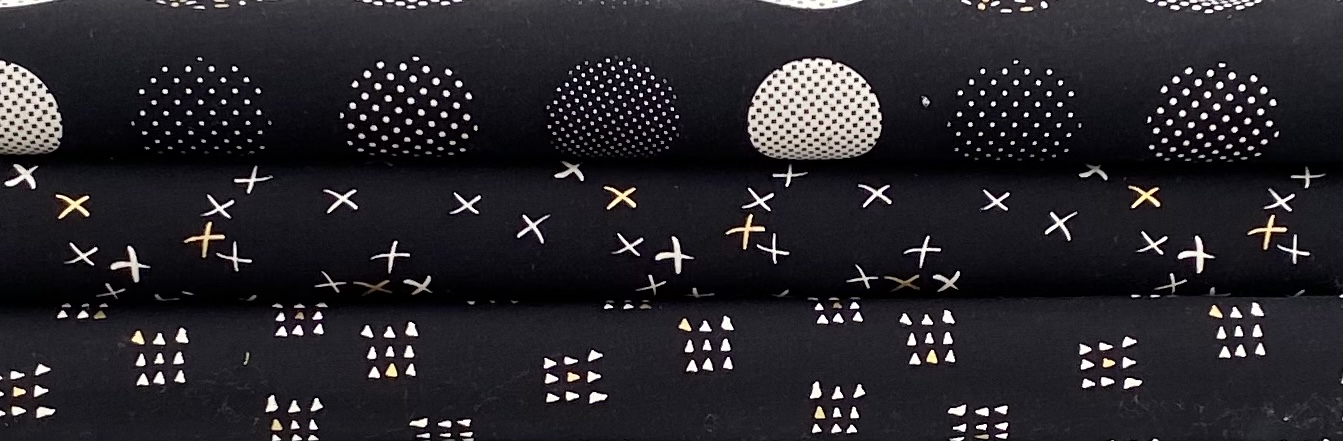 Beskrivelse Canvas (Veskestoff) fra Zen Chic i 100 % fast bomull med bredde på ca.110 cm. Stoffene er i sort med noe innslag av gull i. To av stoffene har også vært brukt i et veskeprosjekt i Quiltemagasinet nr.2 / 2022. Det sorte med bomber og det sorte med kryss. I magasinet er det stoffet med kryss i hvitt, men jeg syntes det blir god harmoni i veske med tilhørende sort stoff. Se også inspirasjonsbilder for stoffene. Finnes også panel i denne serien |