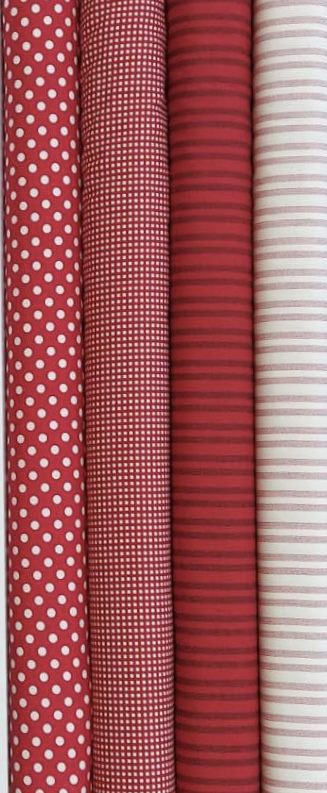 Beskrivelse Fine stoffer i gode juletoner. Stoffene er fra Moda og er i fast bomull og har bredde på ca. 110 cm. Disse kan du sy alt fra gardiner til å bruke i din quilt eller om så er sy deg en skjorte av stoffene |