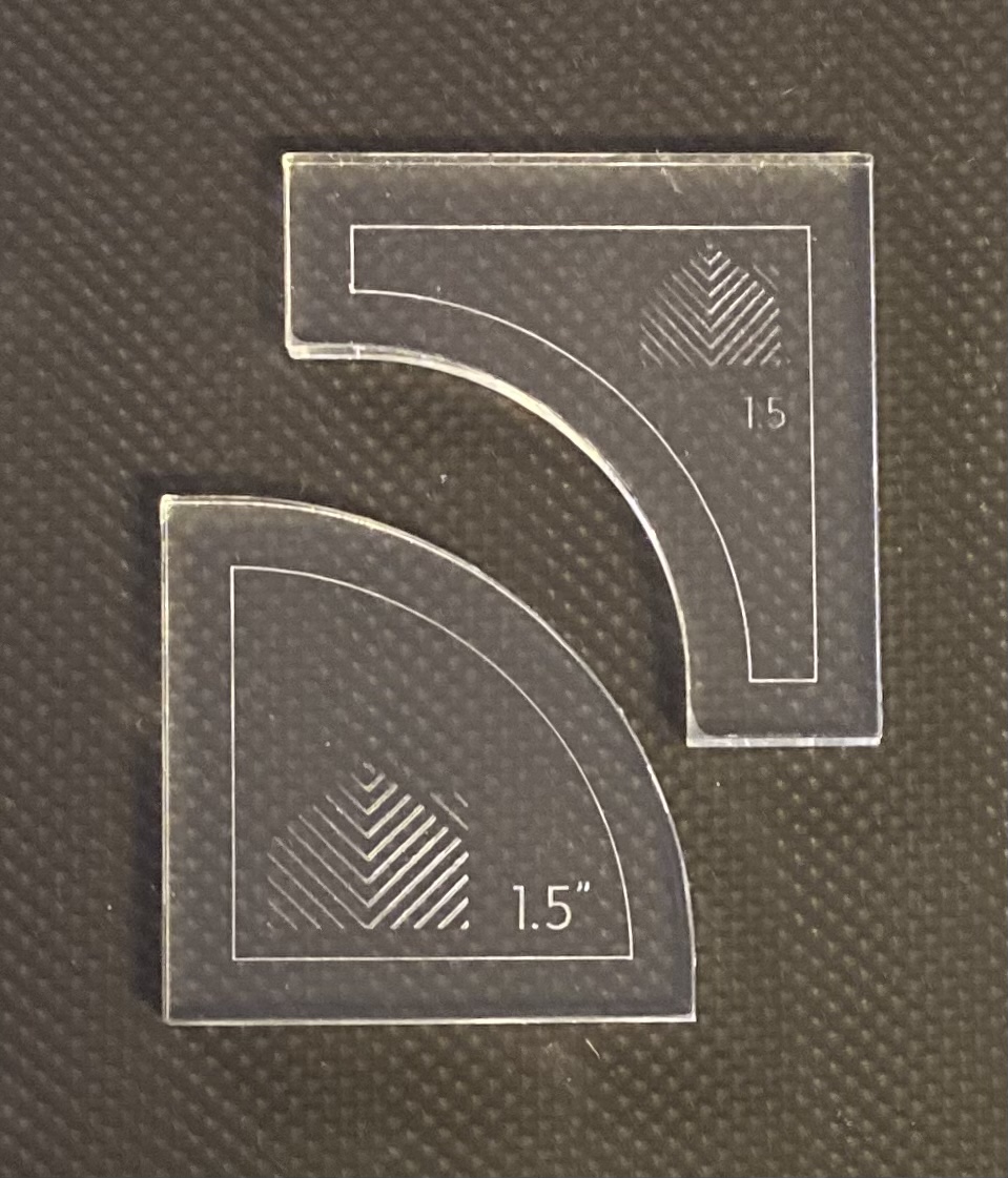 I boken Quilt modern curves and stripes er det noen linjaler som er laget til prosjektene i boka. Her er både linjaler og '' trimmeverktøy''