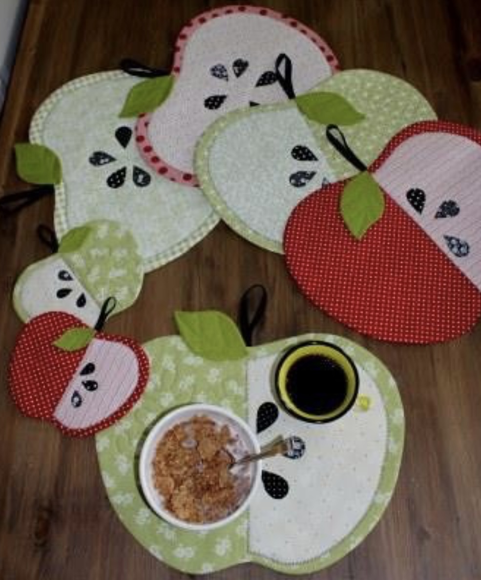 Morsomme spisebrikker i epleform. Her kan du bruke fantasi og stoffer fra reste kurven for å lage forskjellige inntrykk.