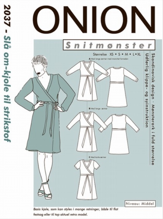 Mønster på omslagskjole med kort eller lang erm. Stoffvalg er stikket eller elastiske stoffer som Fex Viscose Jersey
