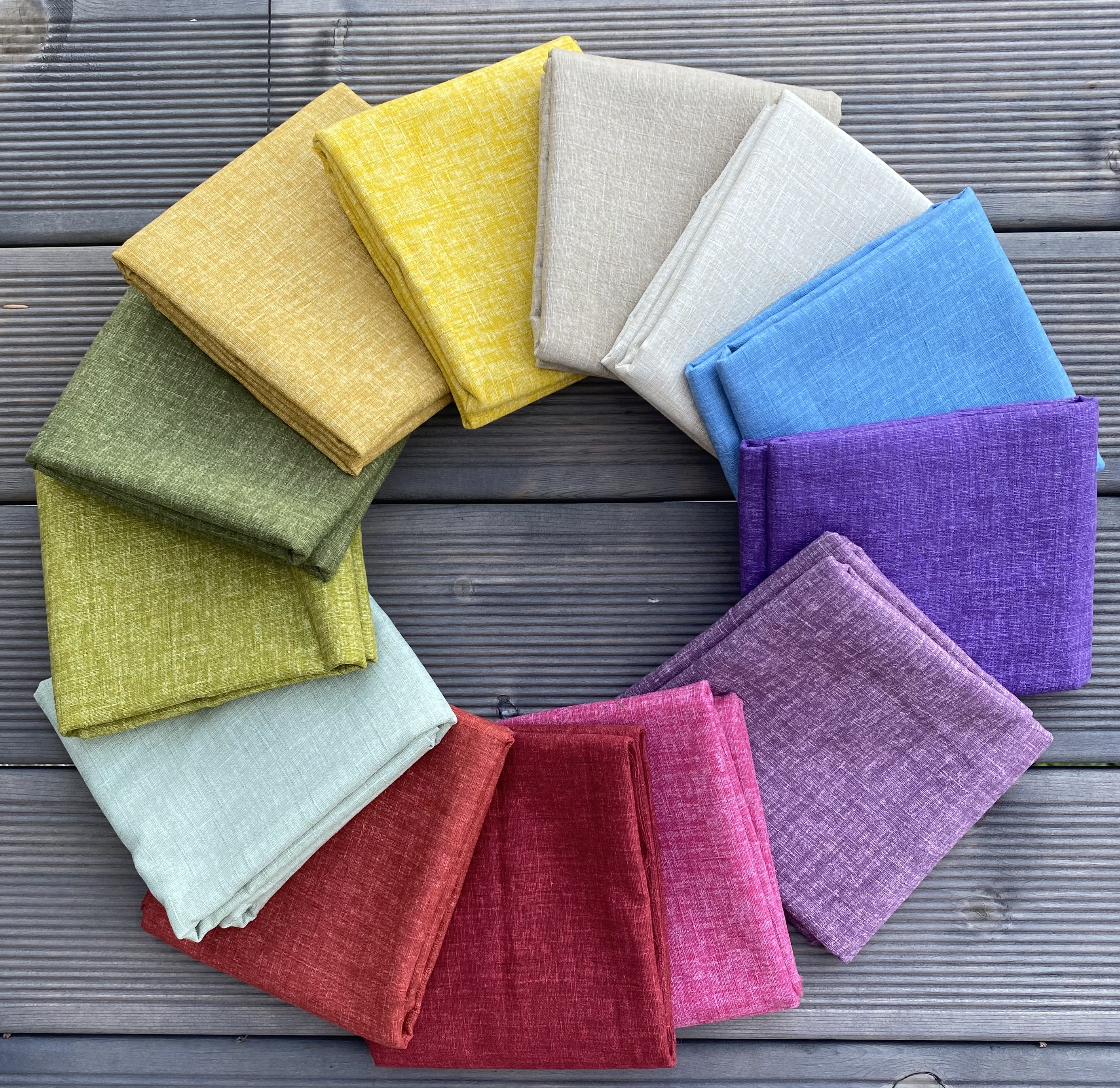Beskrivelse Nydelige Japanske stoffer i klare farger. Se på hovedbilde for mest mulig rett gjengivelse av fargene. Stoffene er i 100 % fast bomull med bredde på ca.110 cm. Dette er den ypperste kvalitet av bomullstoffer. Her har vi også laget små pakker for de som holder på med applikasjon eller håndsøm. Den ene pakken er 30 cm i full bredde ( 110 cm) med 13 farger. Den andre pakken er 20 cm x 55 cm for de som bare trenger litt av hvert stoff. OBS! Porto her er beregnet på den tyngste varen, så om du velger et stoff i 50 cm vil vi veie og justere porto slik at du betaler rett beløp |