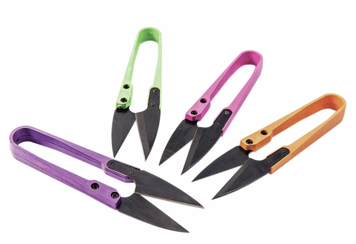 Liten trådsaks som ikke er så klumpete å holde i som den ser ut. Fin å ha ved siden av symaskinen eller overlock maskinen når man holder på og trenger å kutte tråd. Fås i flere farger