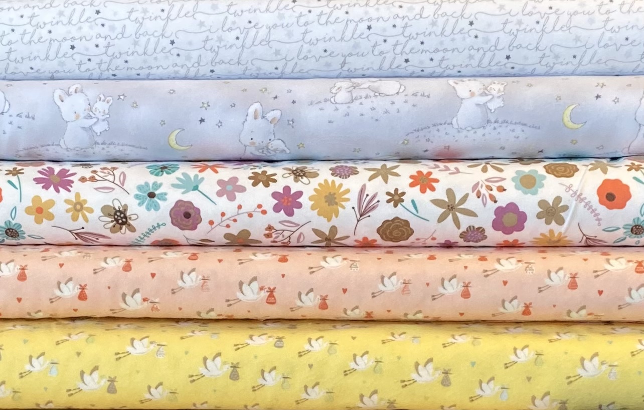 Flotte baby stoffer i flanell. Stoffene er med bredde på ca. 110 cm