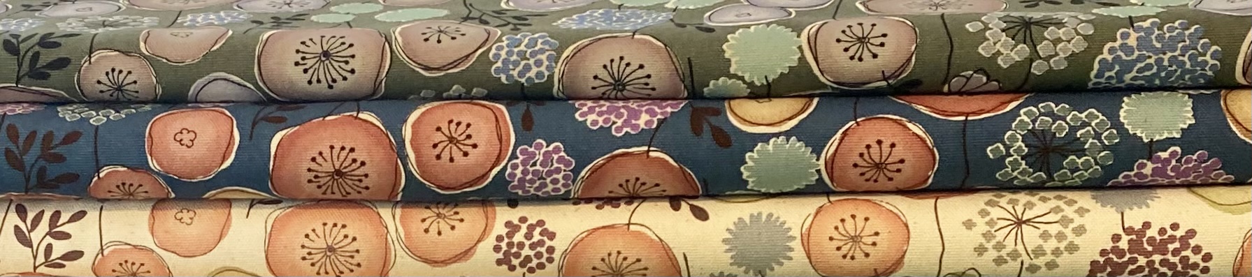 Fine stoffer med bredde på ca 110 cm. Stoffene er i tre farger