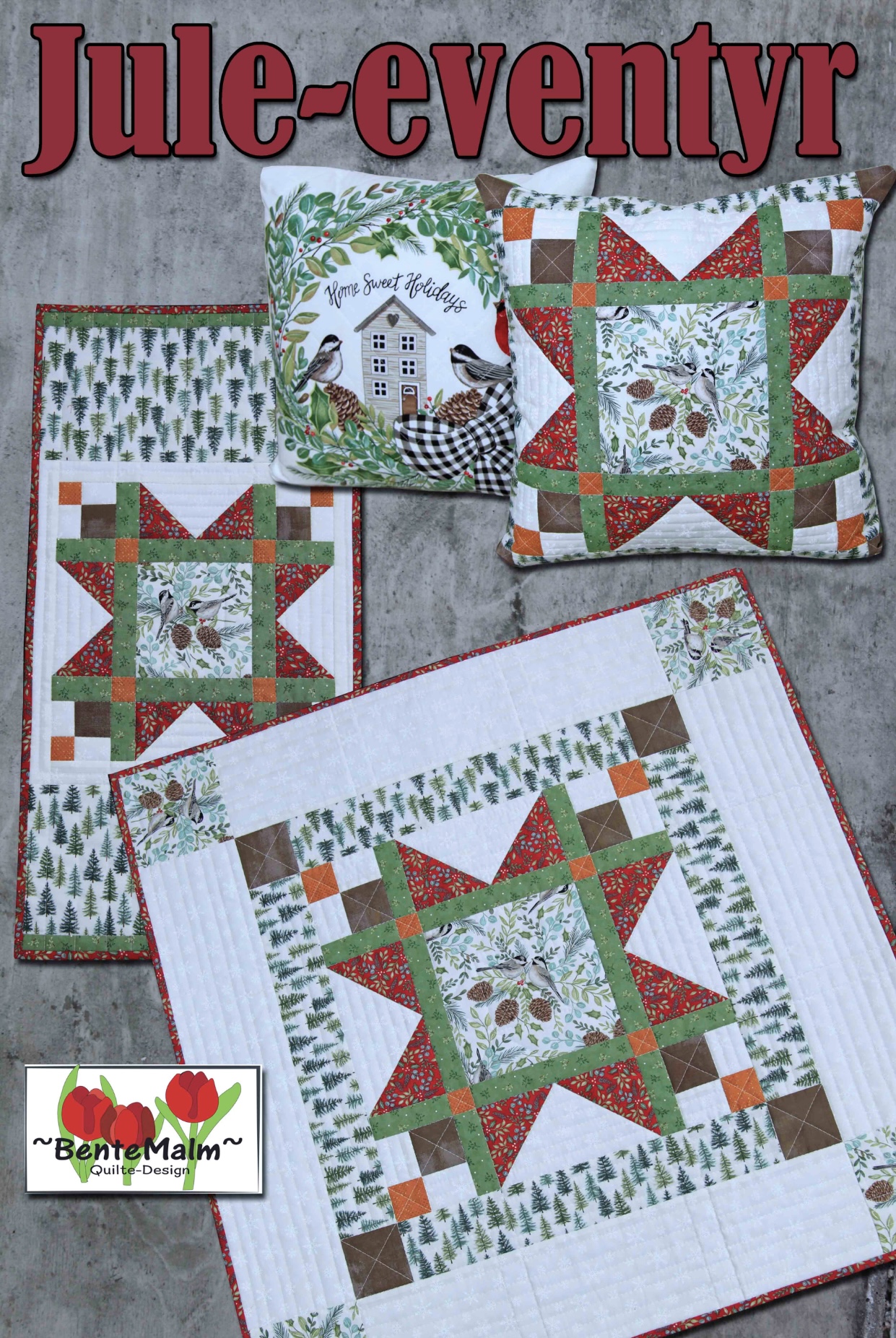 Beskrivelse Mønster fra Bente Malm på snipp duk str 79 x 79 cm, Liten løper str 37 x 71 cm og putetrekk i str 51 x 51 cm. Tradisjonell lappeteknikk med hullhjørner. Quiltet med rettsømsfot / overtransportør og glidelåssæm i bunnen på puten. Følg instruksjonen på mønstret i forhold til stoffmengde. Mønstret kan du også fint bruke i en sommervariant med andre farger |