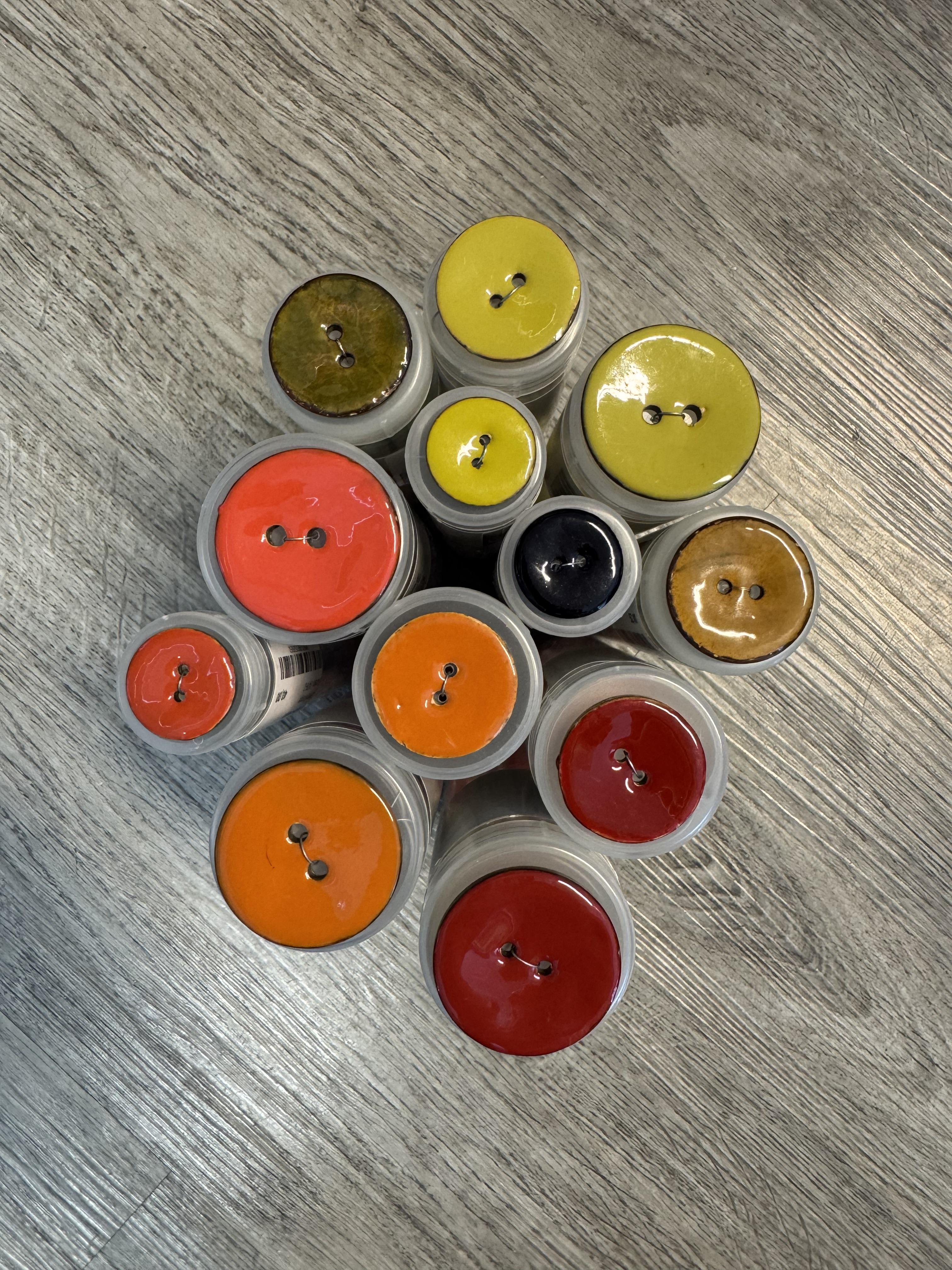 Knapper emaljert i delikate farger. Knappene er 23mm, 31mm, 30mm og 38mm. Velg i nedtrekksmenyen for rett farge og størrelse.
