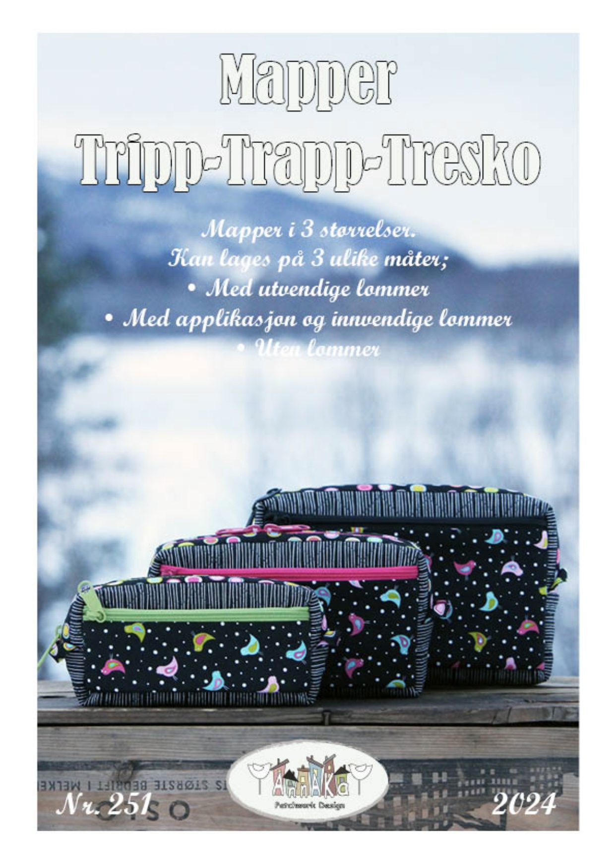 Beskrivelse Mapper i 3 størrelser. Stor - 21,5 x 13,5 x 4,5cm Medium - 19 x 10 x 4,5cm Liten -14,5 x 7,5 x 4,5cm Mappene kan lages på flere ulike måter, og alle er forklart i mønsteret: ??????- med utvendige lommer ??????- med innvendige lommer ??????- uten lommer ??????- med eller uten applikasjon Med andre ord; -et 'multimønster' for mappe-søm. PS! Mønster sender vi som brev om du ikke ber om noe annet, så disse blir det porto på rundt 35 - 40 kr |