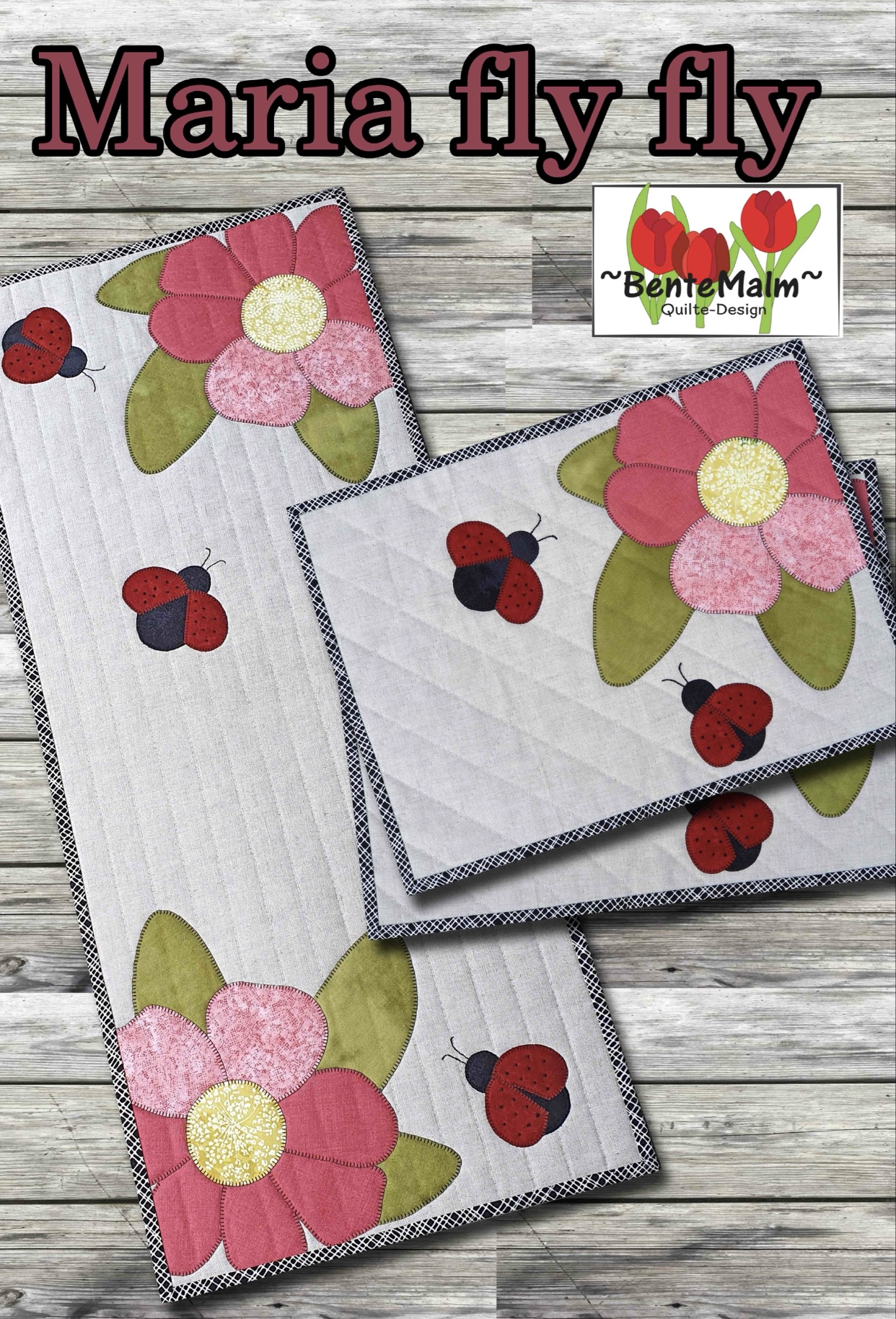 Beskrivelse Str, løper: 13 1/2” x 31 1/2” (34 x 80 cm). Str, spisebrikke: 16 1/2” x 12” (42 x 30 cm). Her kan man godt bruke restestoffene sine. I dette mønstret er hovedstoffet laget av naturlin, men man kan fin bruke hvilket som helst stoff til dette prosjektet som hovedstoff. Teknikker: Quilting med rettsømsfot / overtransportør, applikasjoner med knapphullsting (maskinsøm). Marihønenes ’’værhår’’ og sorte prikker er brodert med moulinégarn. |